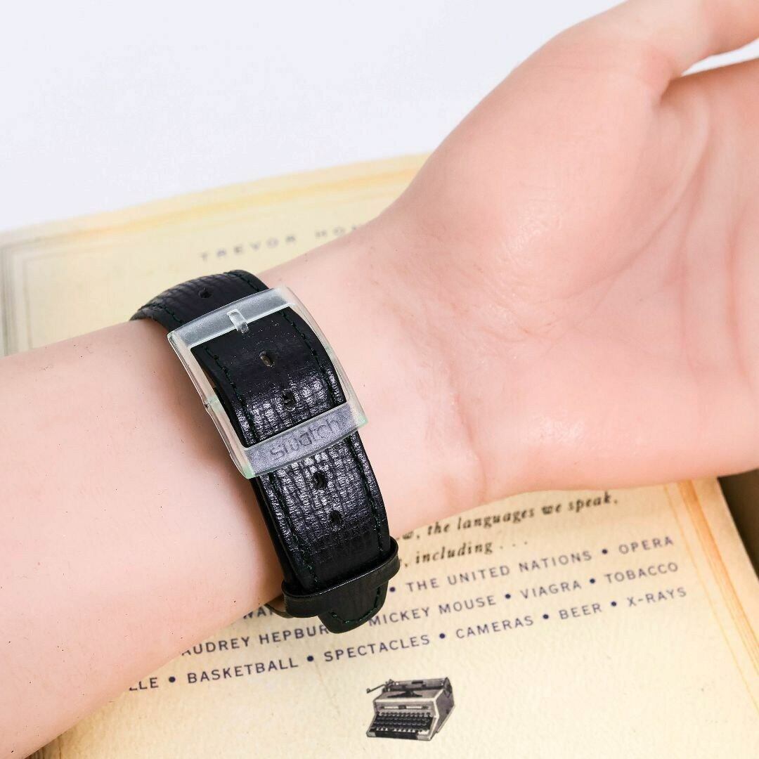 稼働 swatch 腕時計 クロノグラフ 新品電池 レザーベルト ボーイズ811