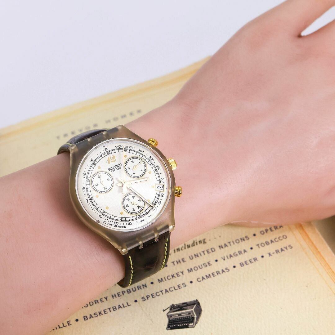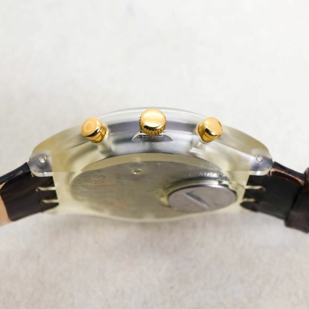 稼働 swatch 腕時計 クロノグラフ シャンパンゴールド文字盤 デイト614