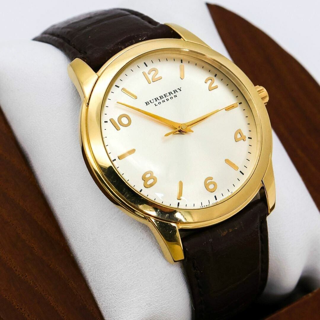 稼働 BURBERRY 腕時計 ゴールド メンズ ラウンド 新品電池 1081