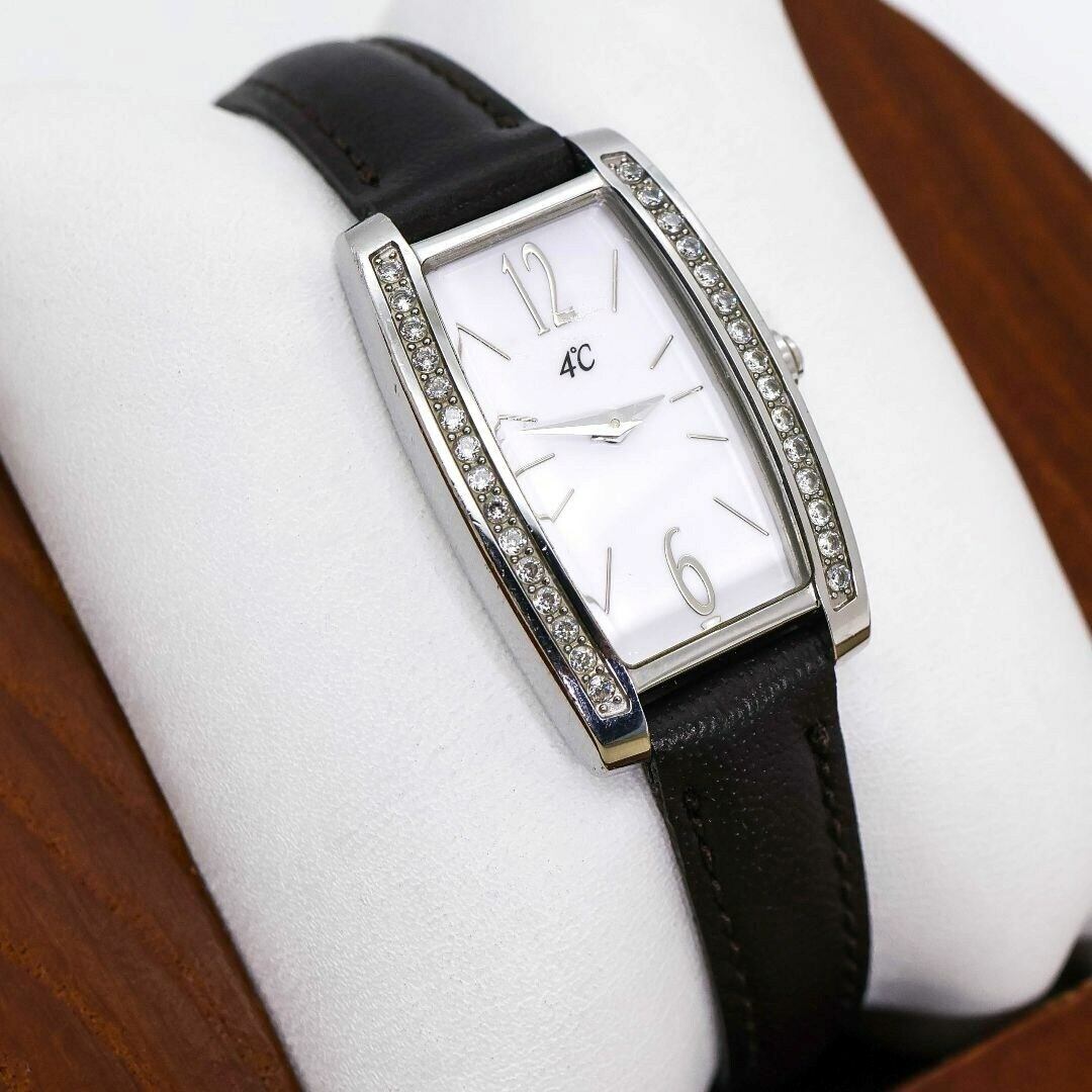 稼働 4℃ 腕時計 ラインストーン トノー レザー 新品電池 華奢 1112