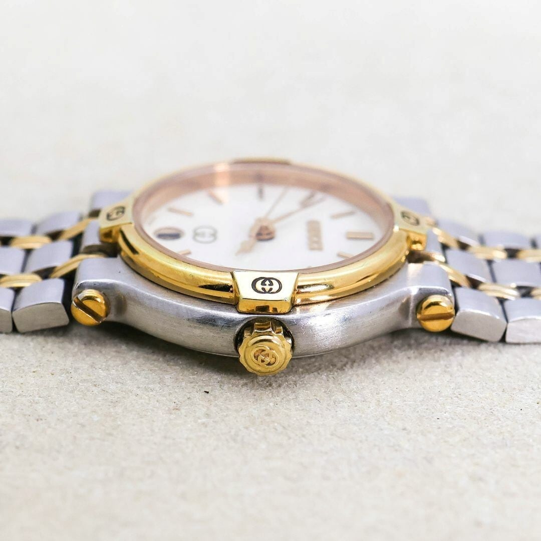 稼働 GUCCI 腕時計 9000L レディース ゴールド文字盤 デイト 679
