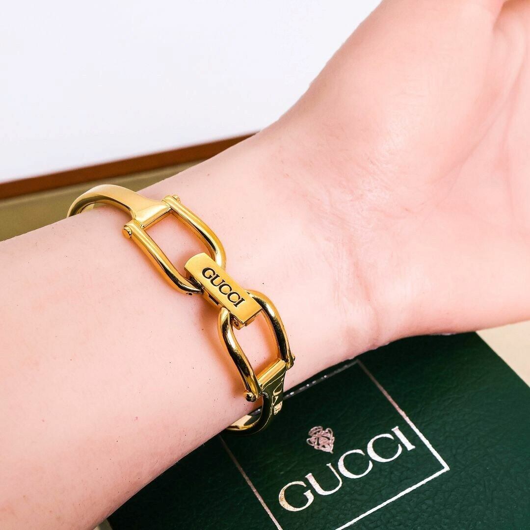 稼働 GUCCI 腕時計 1500L 黒文字盤 バングル ゴールド 1393