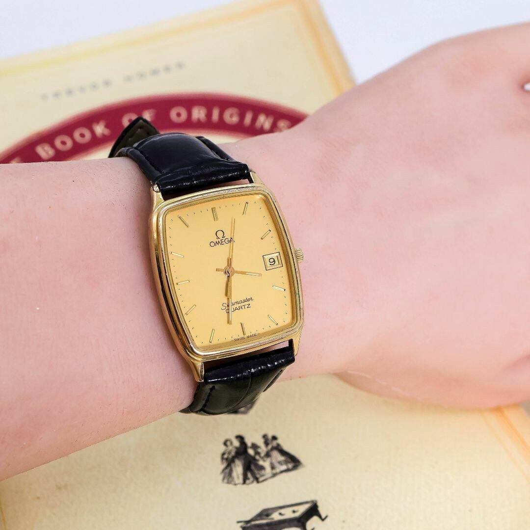 稼働 OMEGA 腕時計 シーマスター デイト トノー ゴールド レザー 822