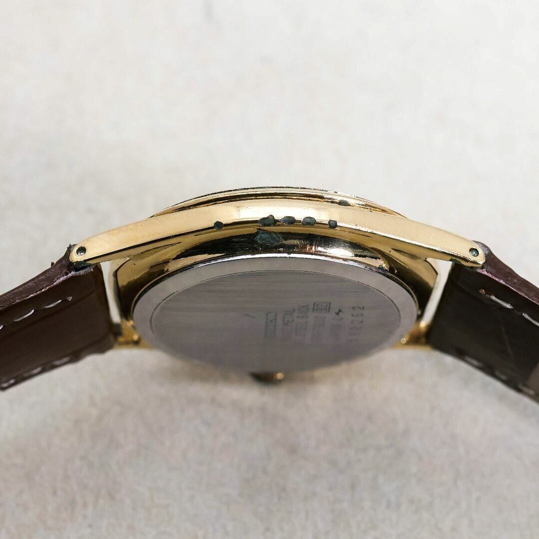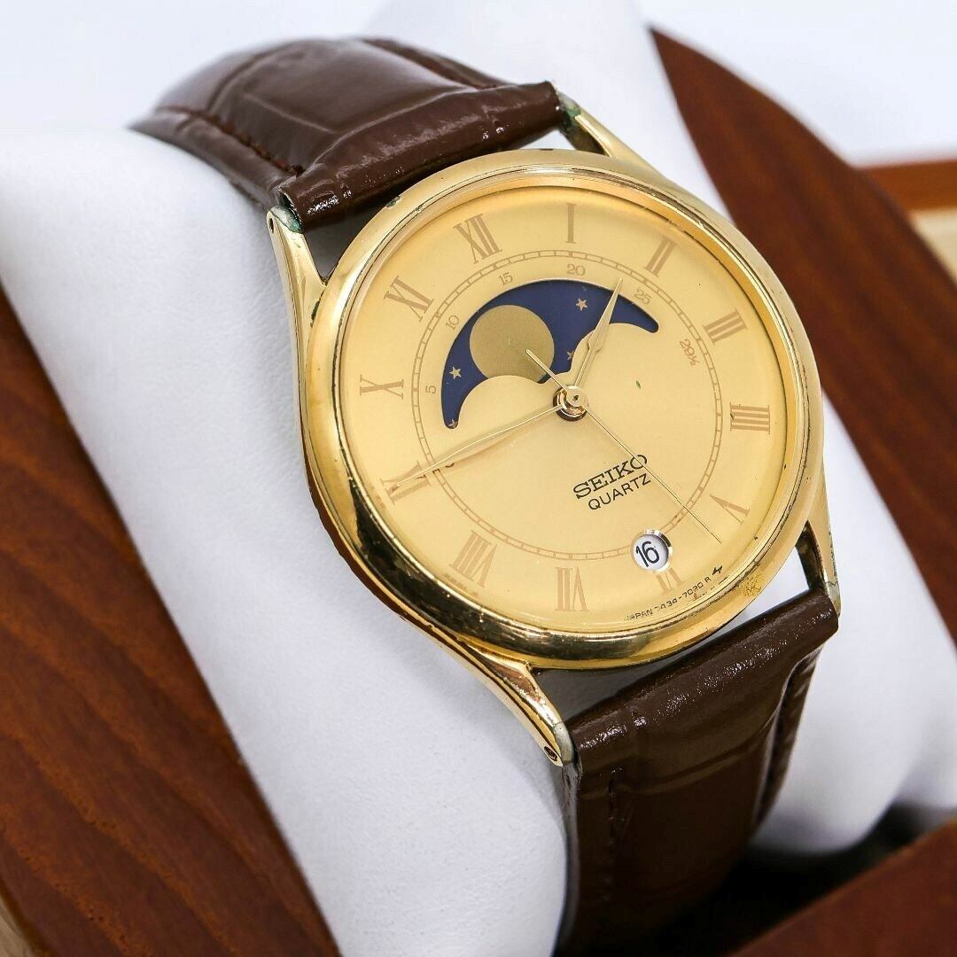 稼働 SEIKO 腕時計 ムーンフェイズ ゴールド文字盤 レザー 1070
