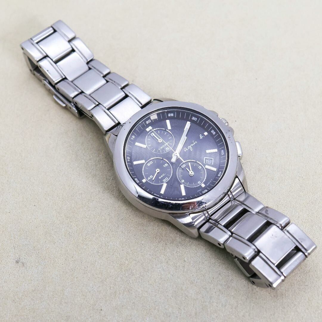 稼働 agnes b. 腕時計 クロノグラフ デイト メンズ ブラック 1314