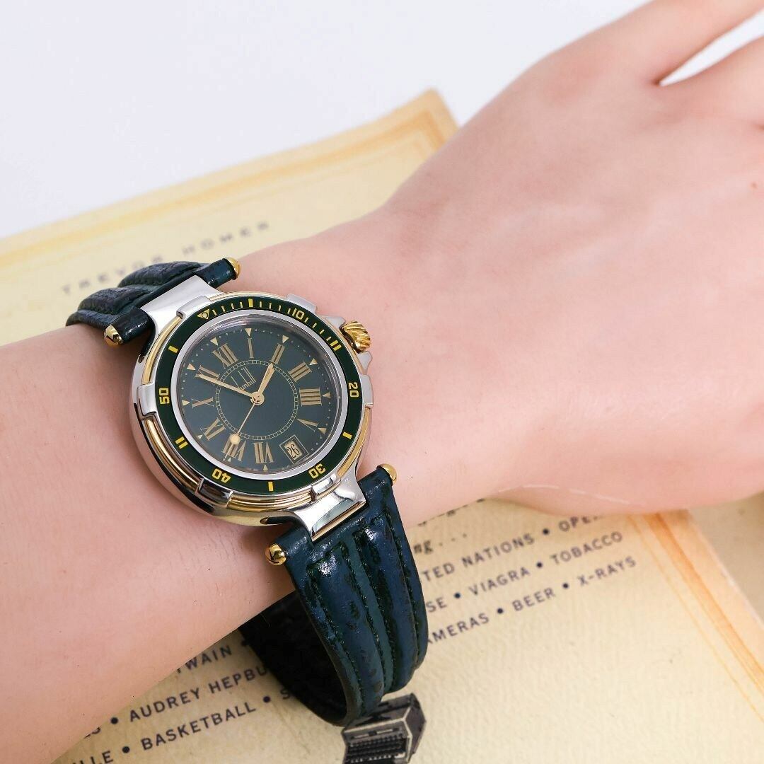 稼働 dunhill ミレニアム 腕時計 ダイバーズクォーツ グリーン 644