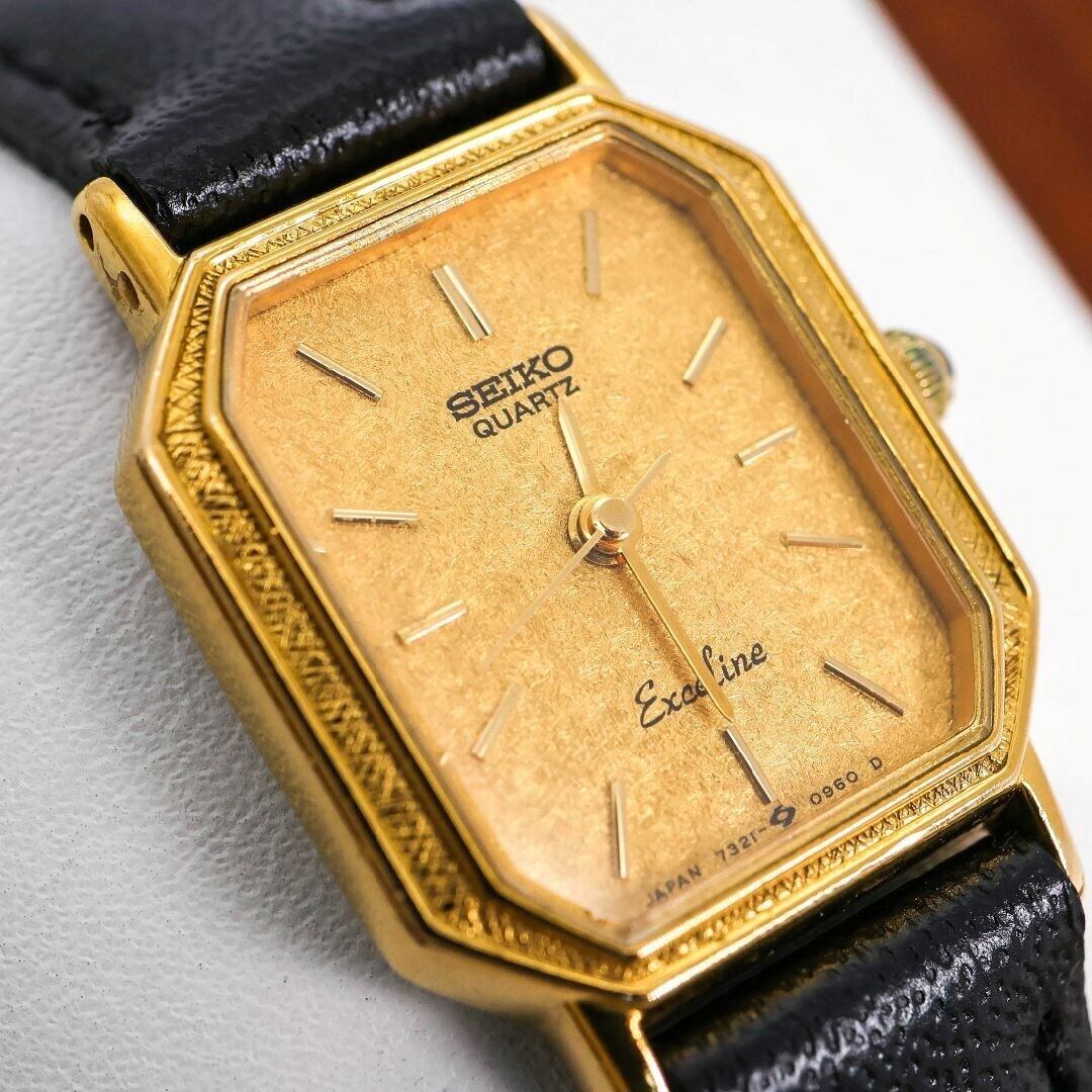 稼働 SEIKO EXCELINE 腕時計 14金ベゼル 新品レザー 632