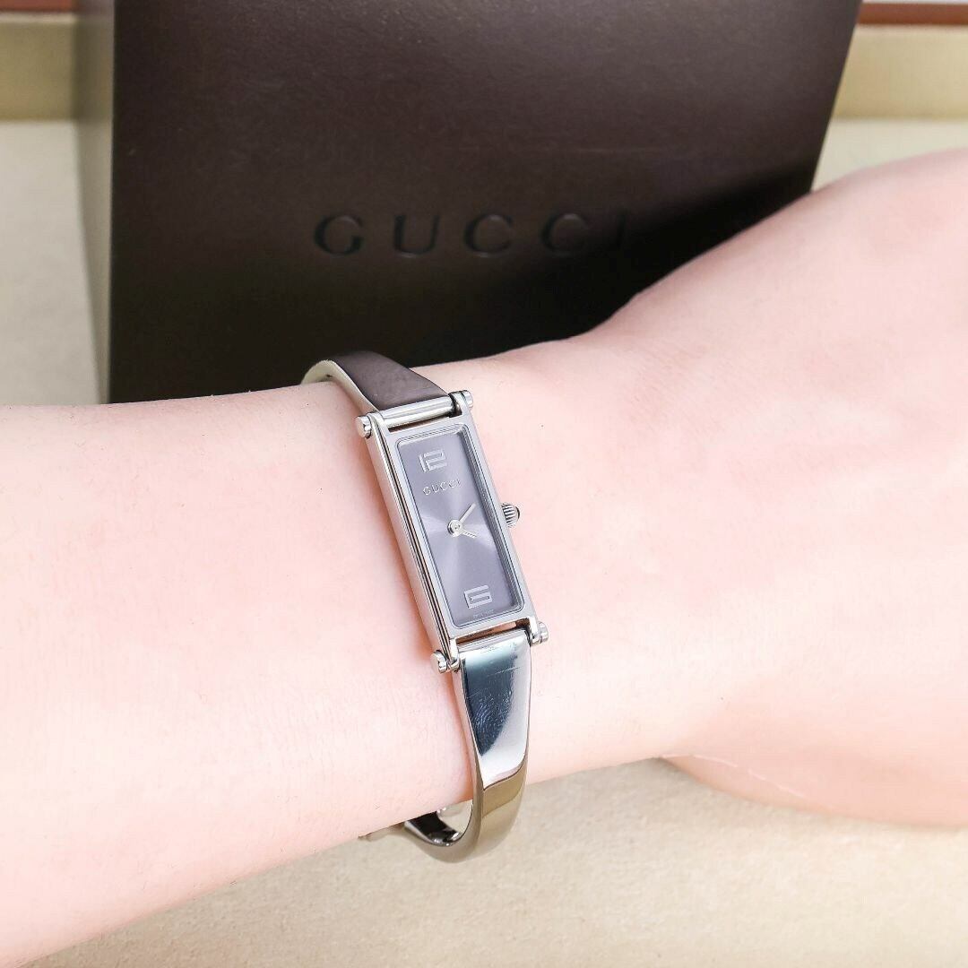 稼働 GUCCI 腕時計 1500L バングル グレー 外箱 レディース1394