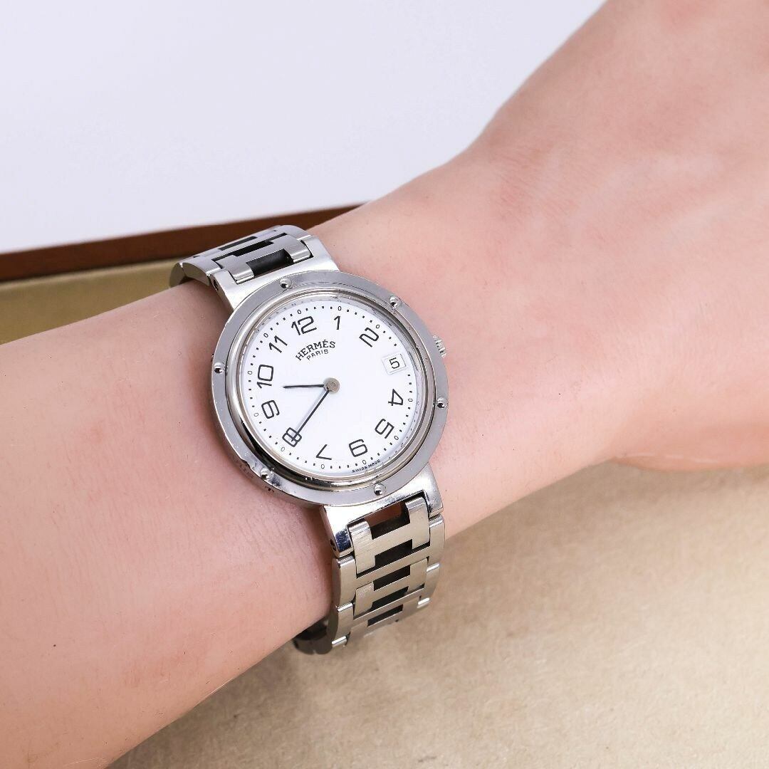 稼働 Hermes クリッパー 腕時計 メンズ デイト ホワイト 1596
