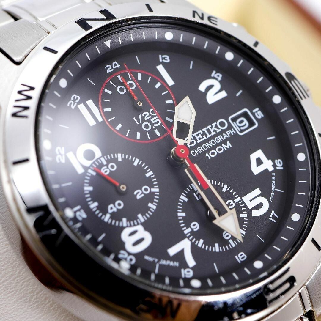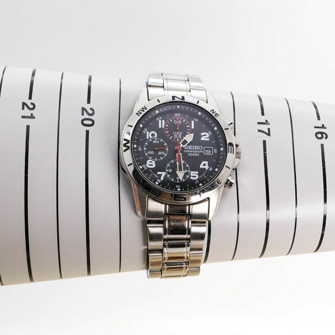 稼働 SEIKO 腕時計 クロノグラフ ブラック デイト メンズ 1687