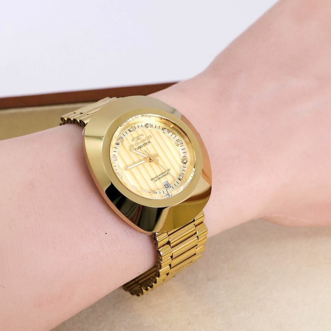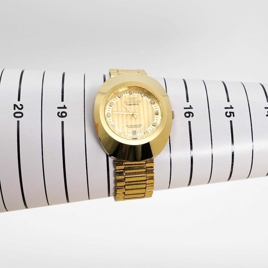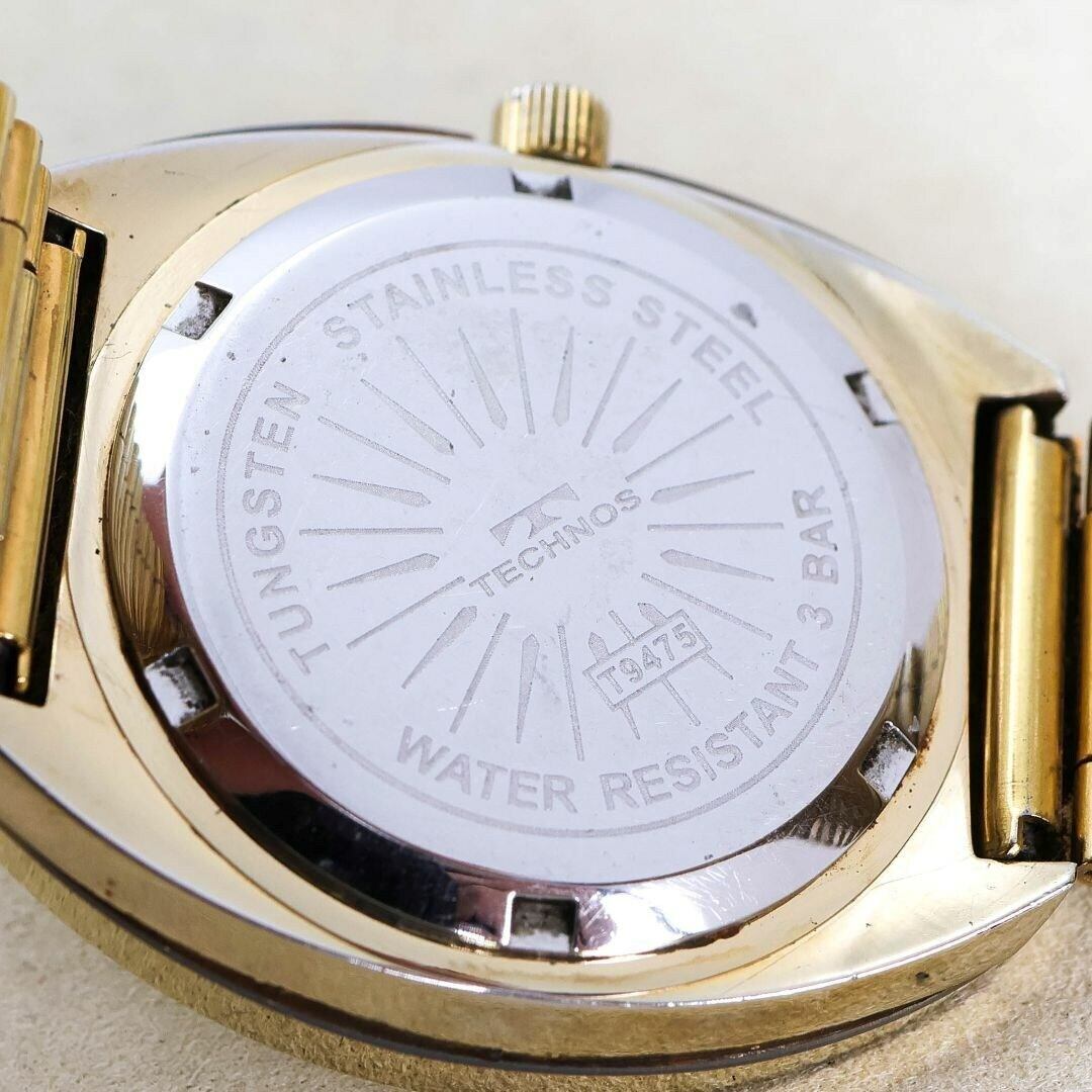 稼働 TECHNOS 腕時計 タングステン デイト 11Pストーン 1492