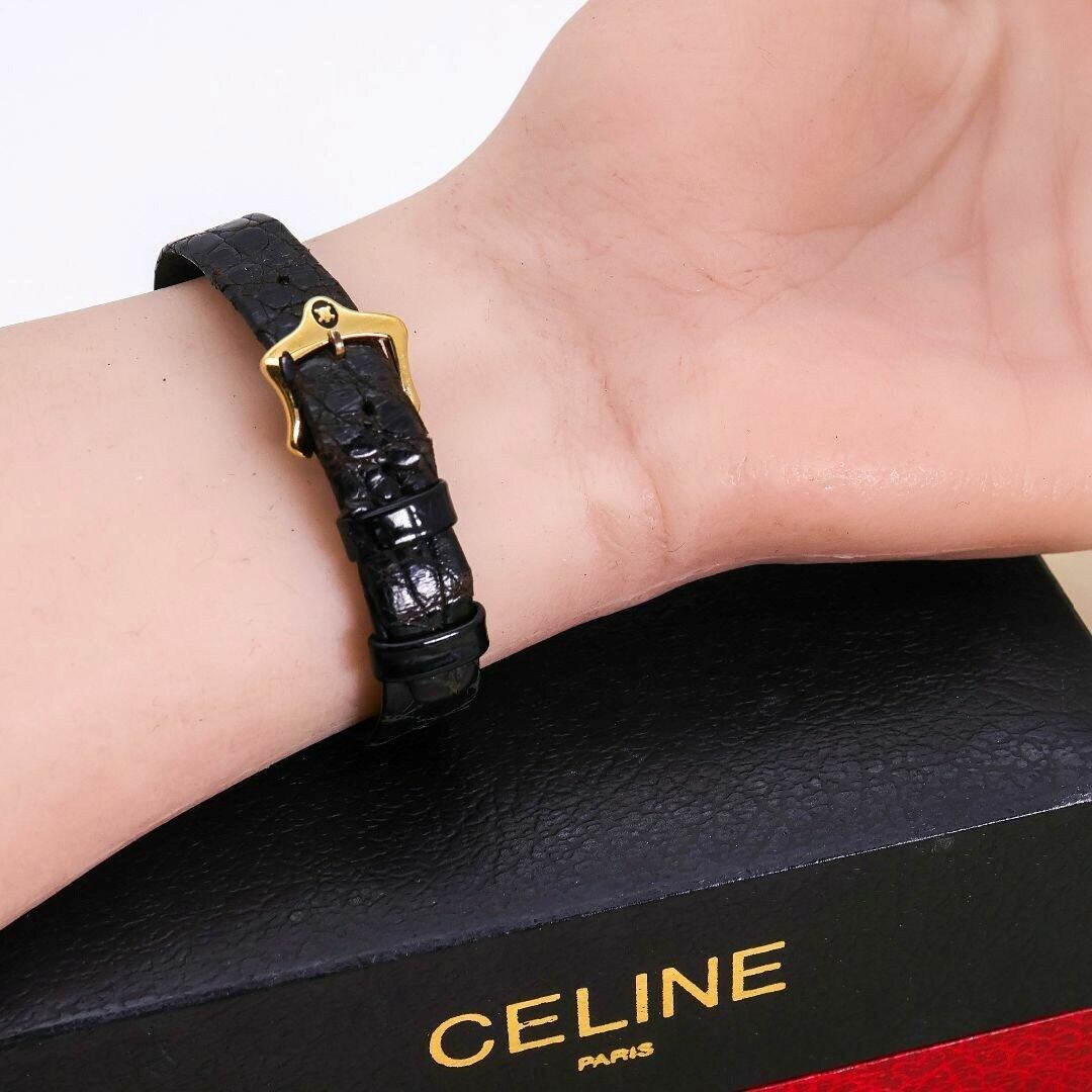 稼働 CELINE 腕時計 アンティーク ゴールド レザー 外箱 華奢 1455
