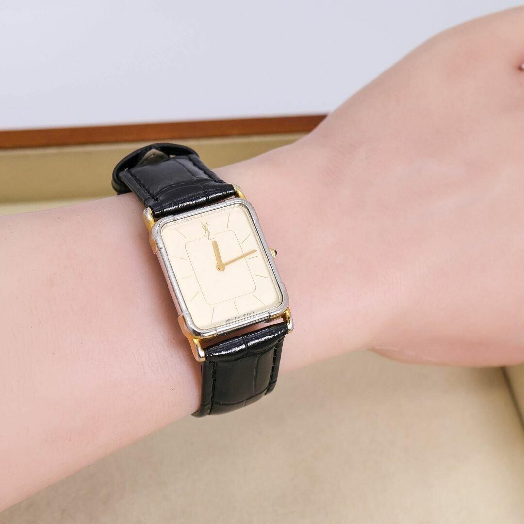 稼働 イヴサンローラン 腕時計 YSL 新品レザーベルト スクエア 1848