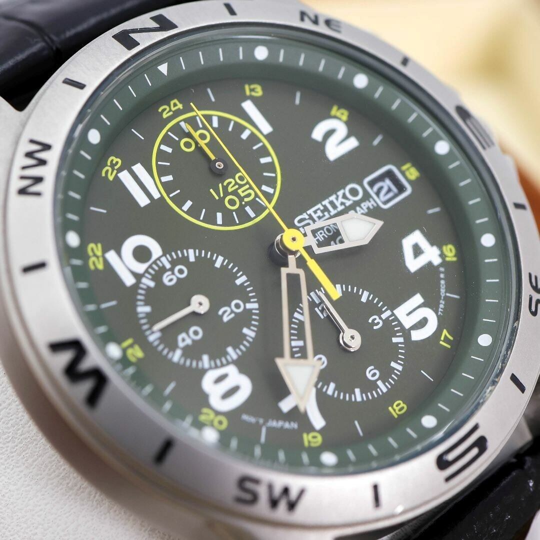 稼働 SEIKO 腕時計 クロノグラフ デイト グリーン メンズ 1796