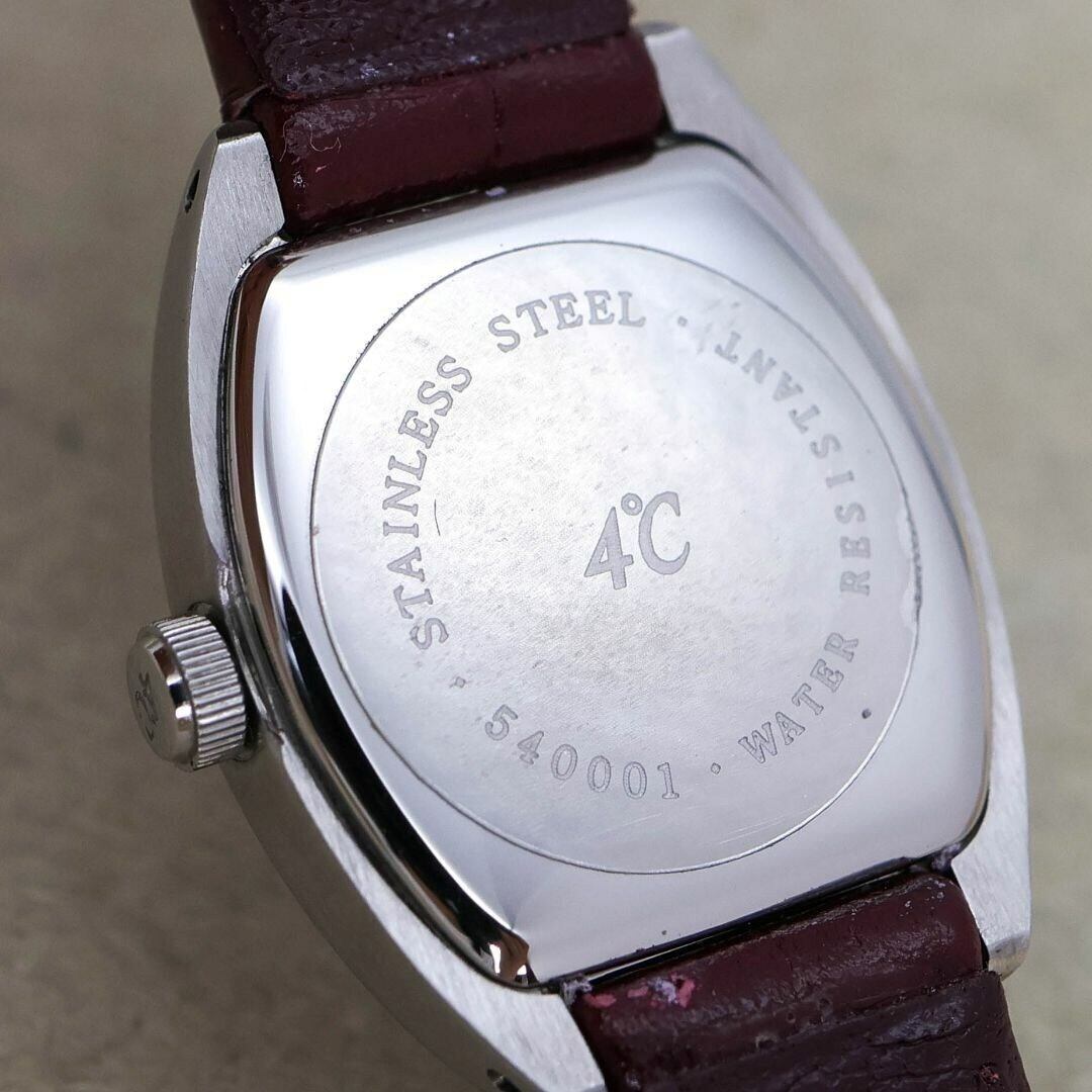 稼働 4℃ 腕時計 ホワイトシェル トノー 外箱付 美品 新品電池 1633