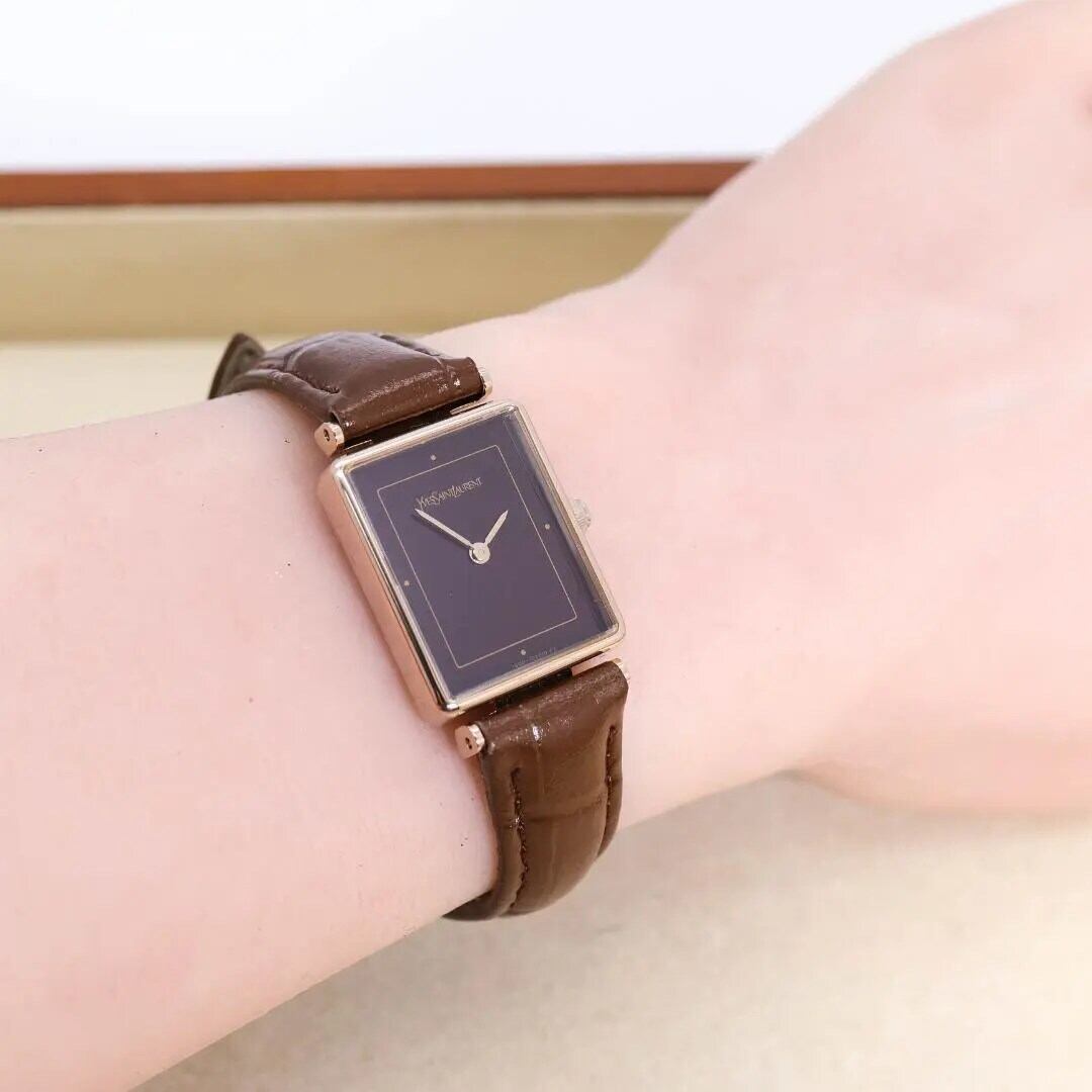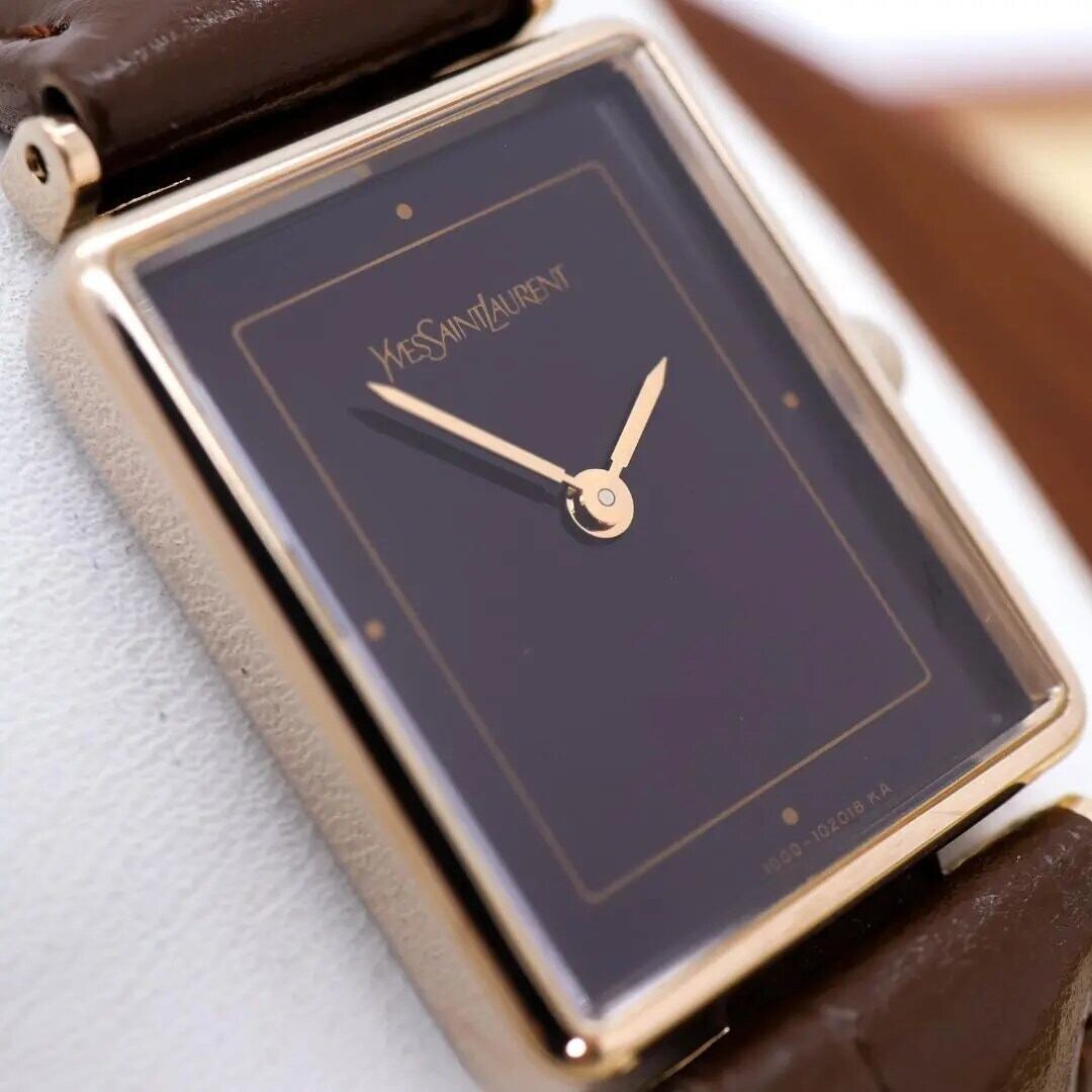 稼働 イヴサンローラン 腕時計 スクエア ブラウン レザー 新品電池 1883