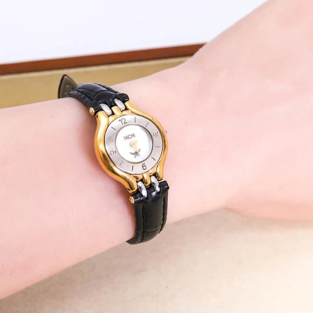 稼働 MCM 腕時計 ロゴ 新品電池 クォーツ レディース レザーベルト 588