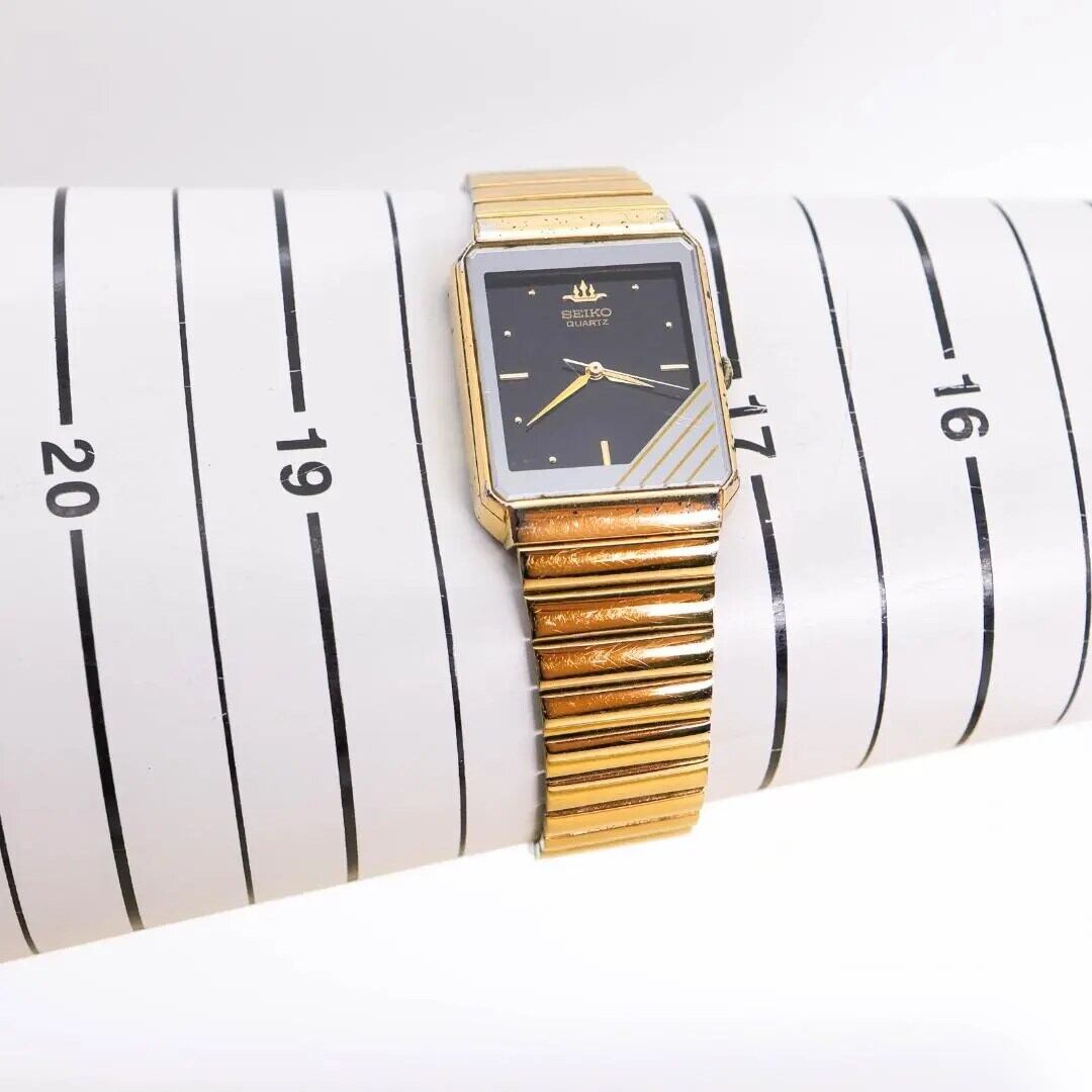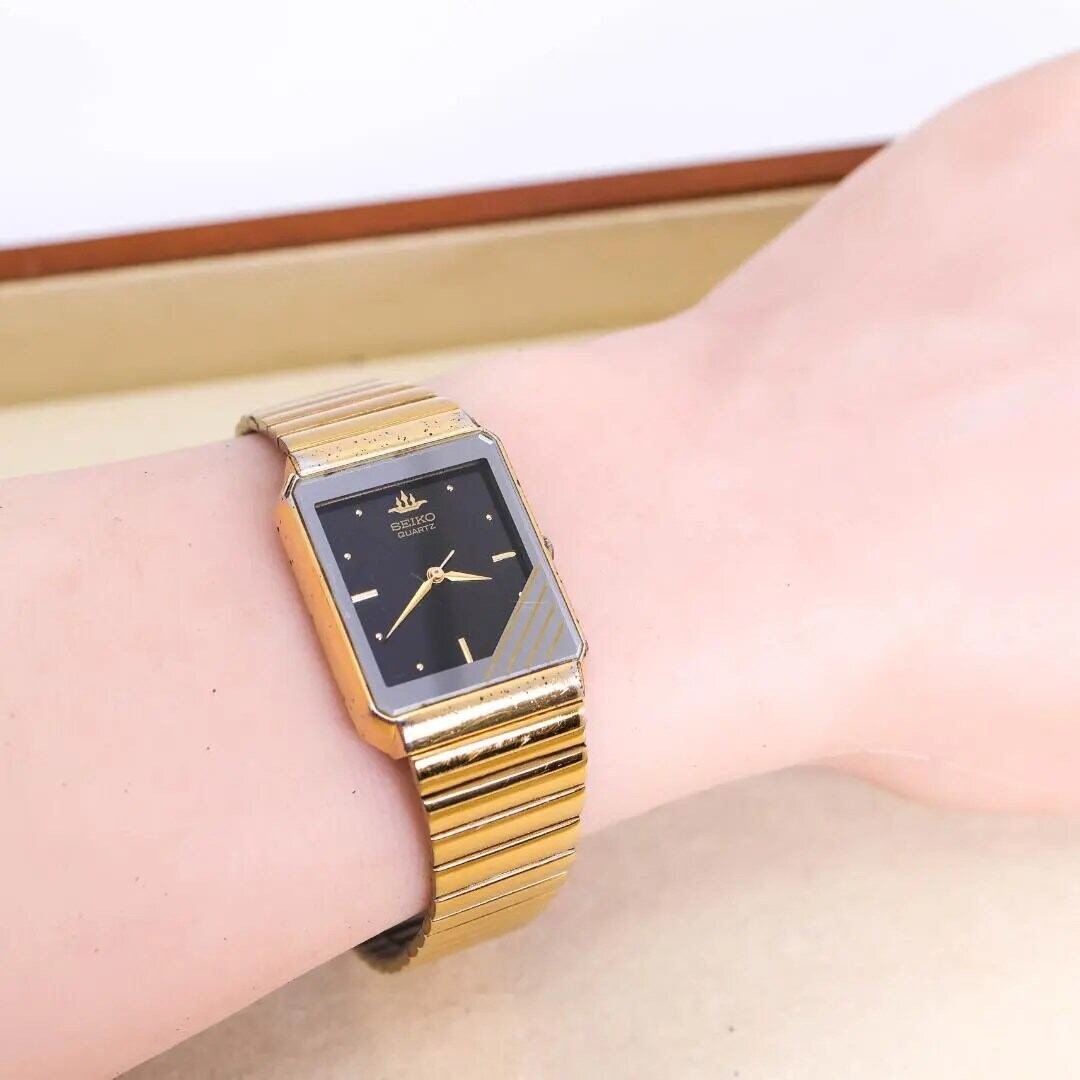稼働 SEIKO 腕時計 王冠 ボーイズ スクエア 黒文字盤 1869