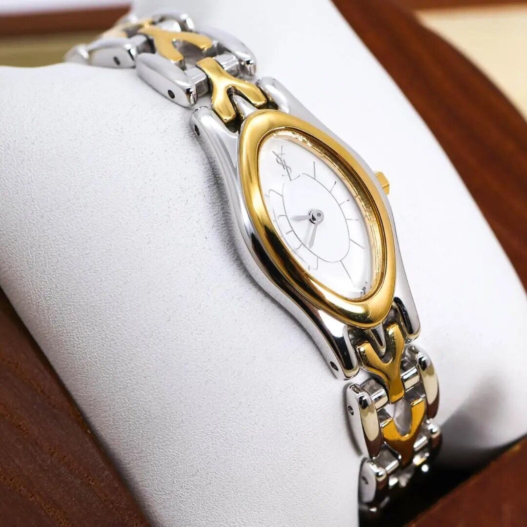 稼働 イヴサンローラン 腕時計 YSLロゴ ブレスウォッチ オーバル 2192