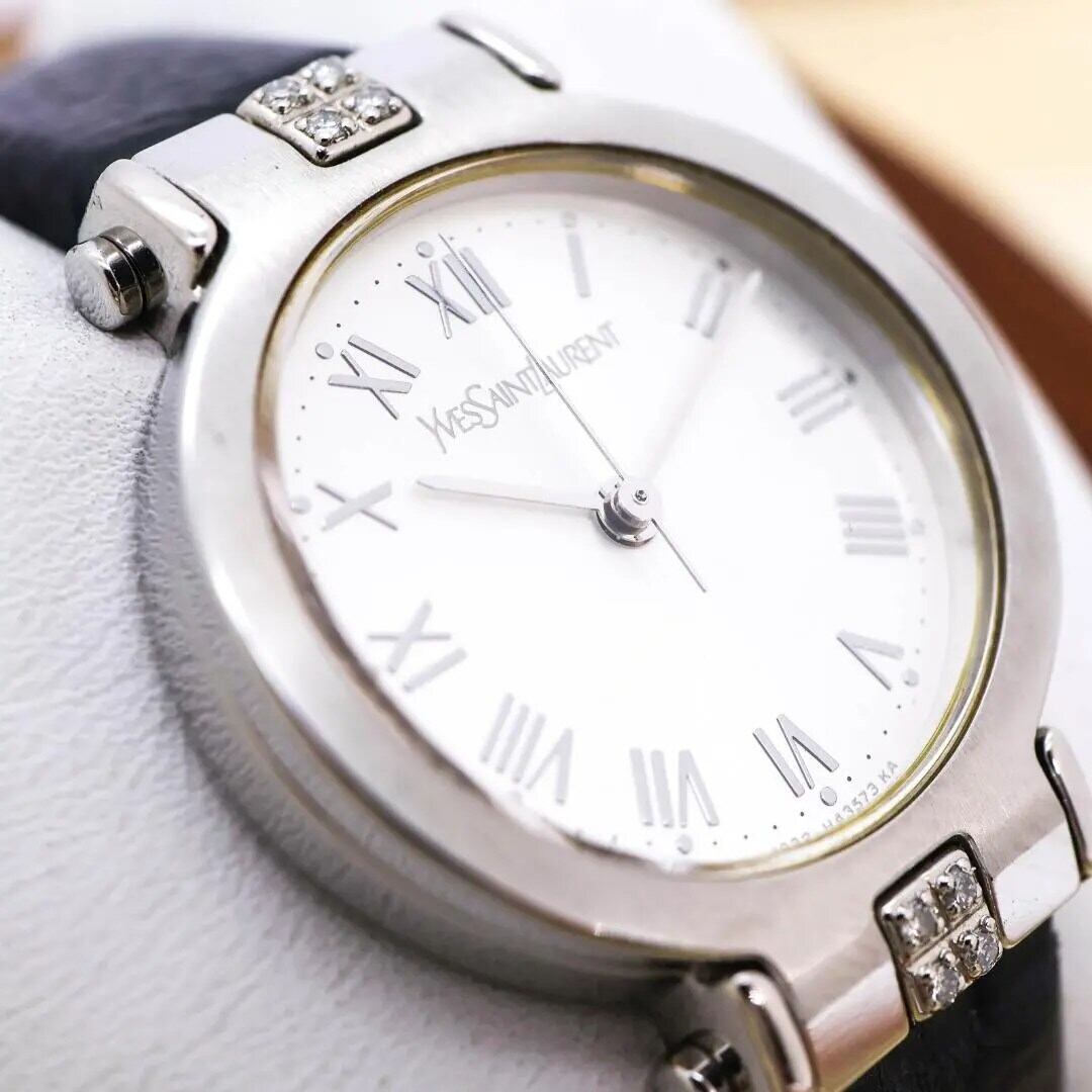 稼働 イヴサンローラン 腕時計 ダイヤ8P 新品電池 レディースレザー 2189
