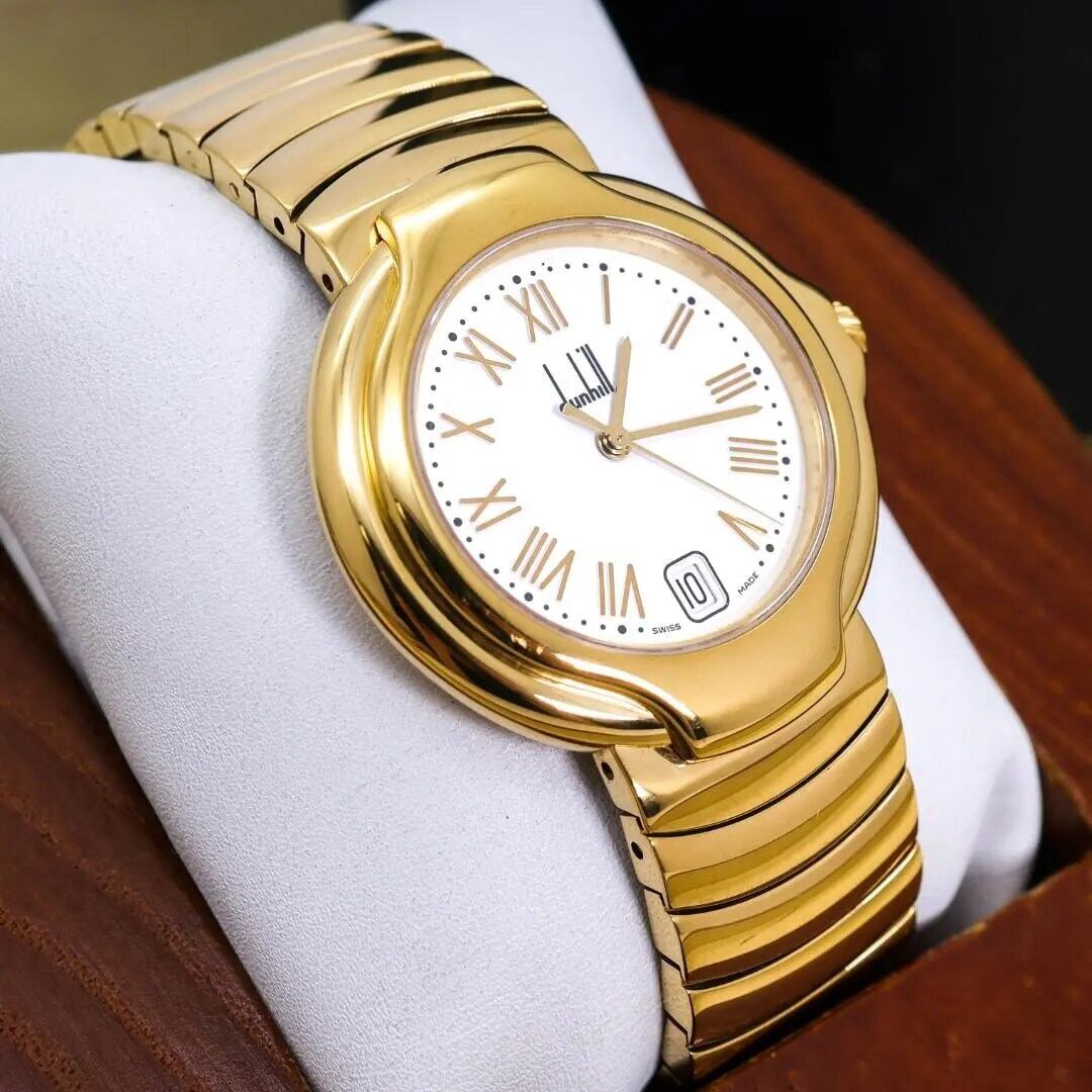 稼働 dunhill ミレニアム 腕時計 ゴールド デイト ホワイト 2286