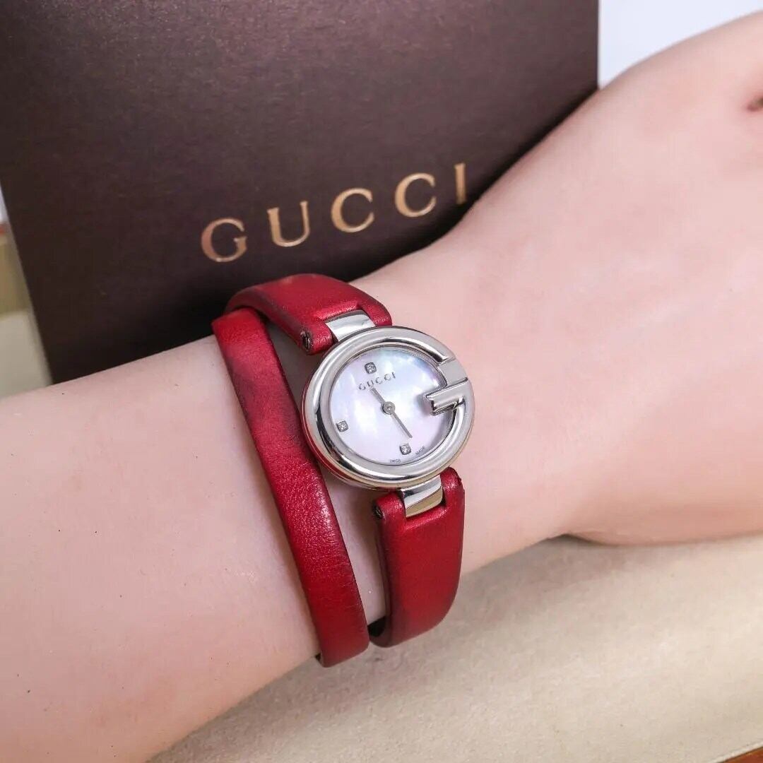 稼働 GUCCI 腕時計 134.5 Gロゴベゼル シェル文字盤 レザー1905