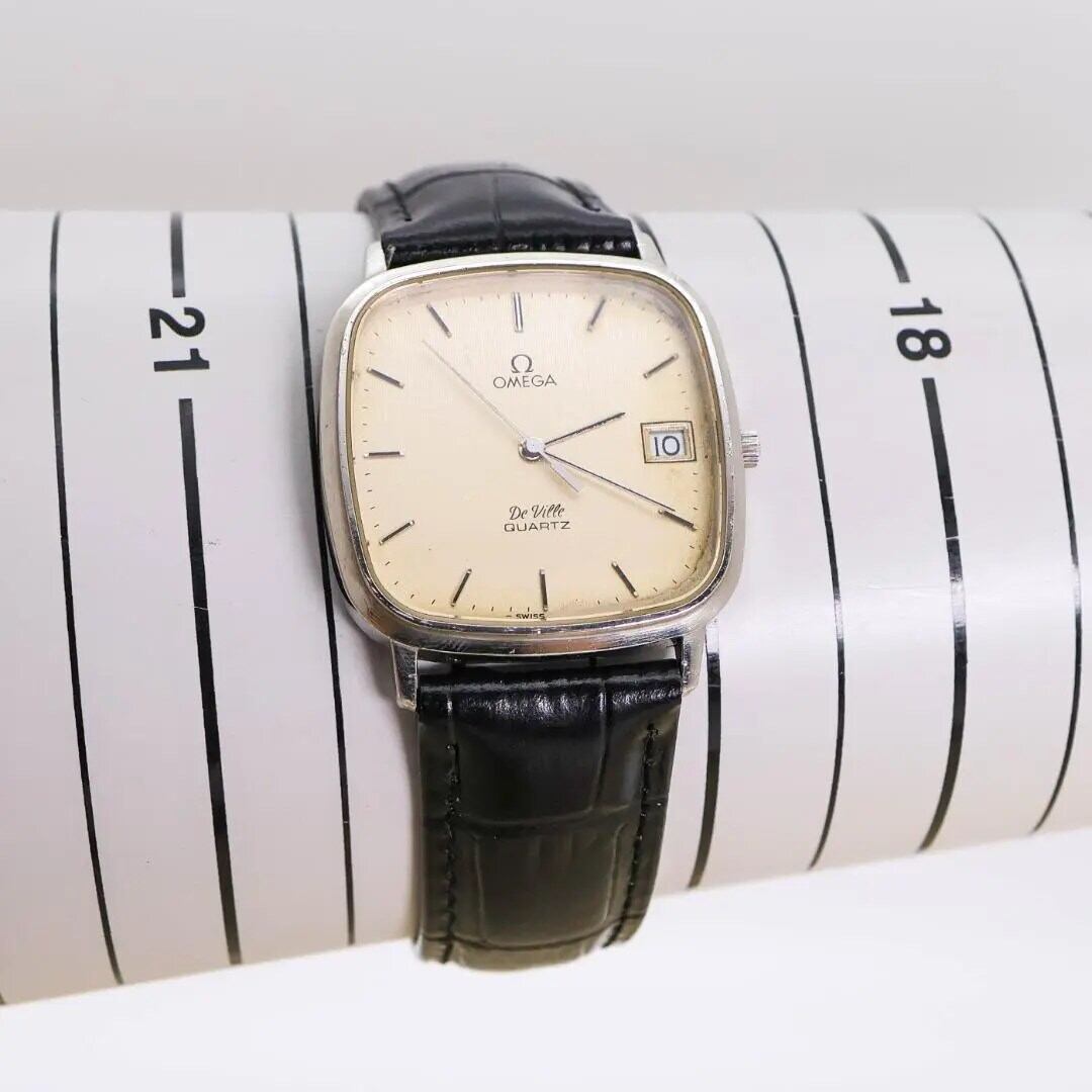 オメガデヴィルからヴィンテージクォーツ式腕時計の出品です。