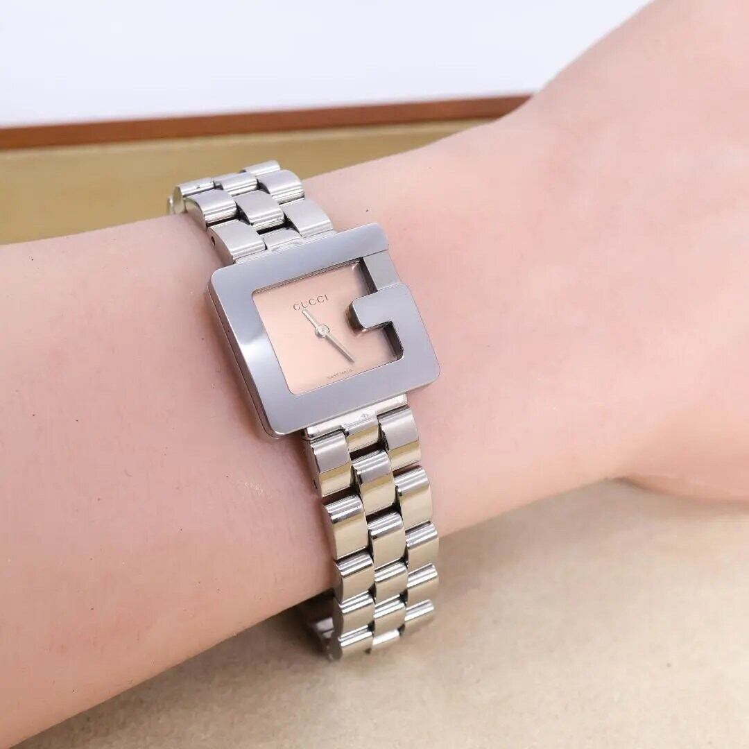 稼働 GUCCI 腕時計 3600L Gロゴベゼル ピンク文字盤 1627