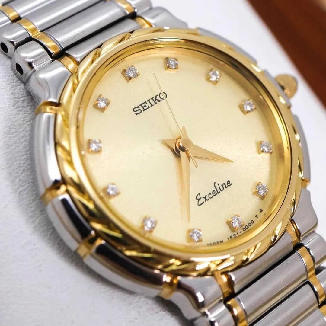 稼働 SEIKO EXCELINE 腕時計 18金ベゼル 12Pダイヤ 1654