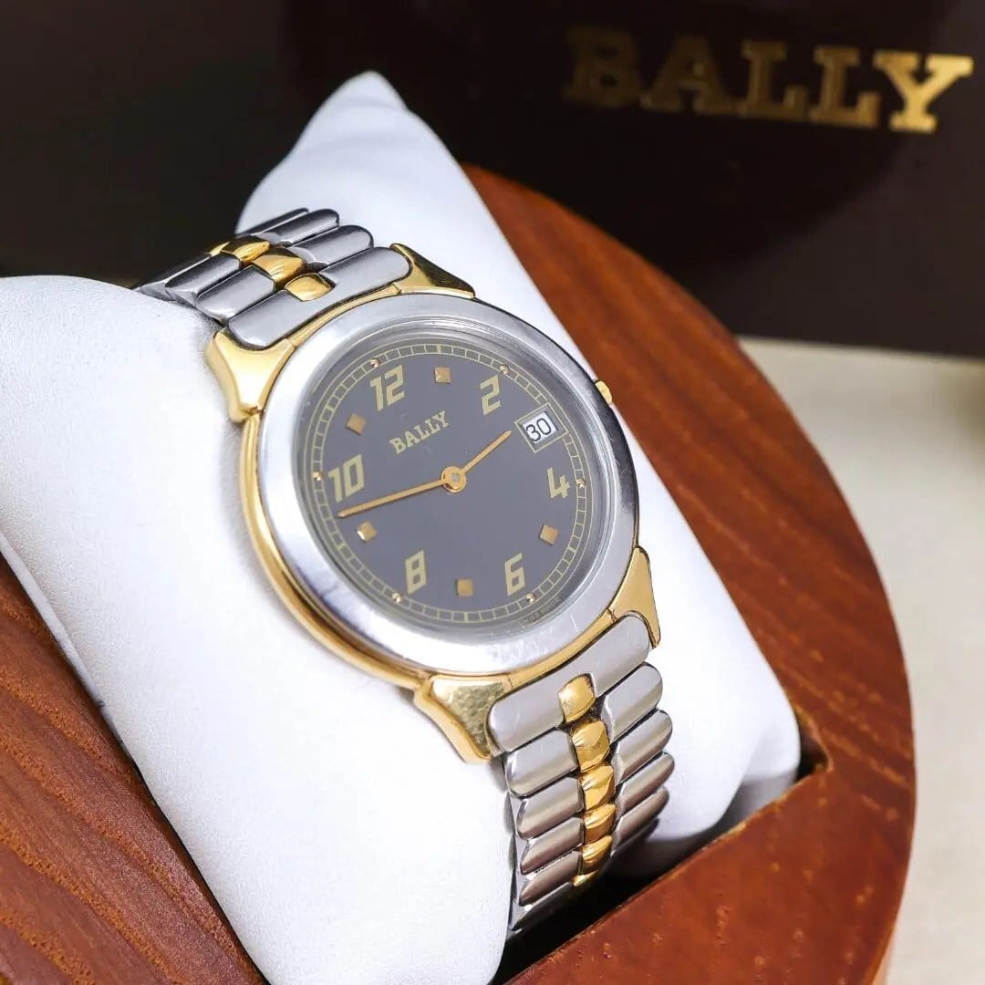 稼働 BALLY 腕時計 グレー文字盤 ボーイズ 外箱付 新品電池 1991