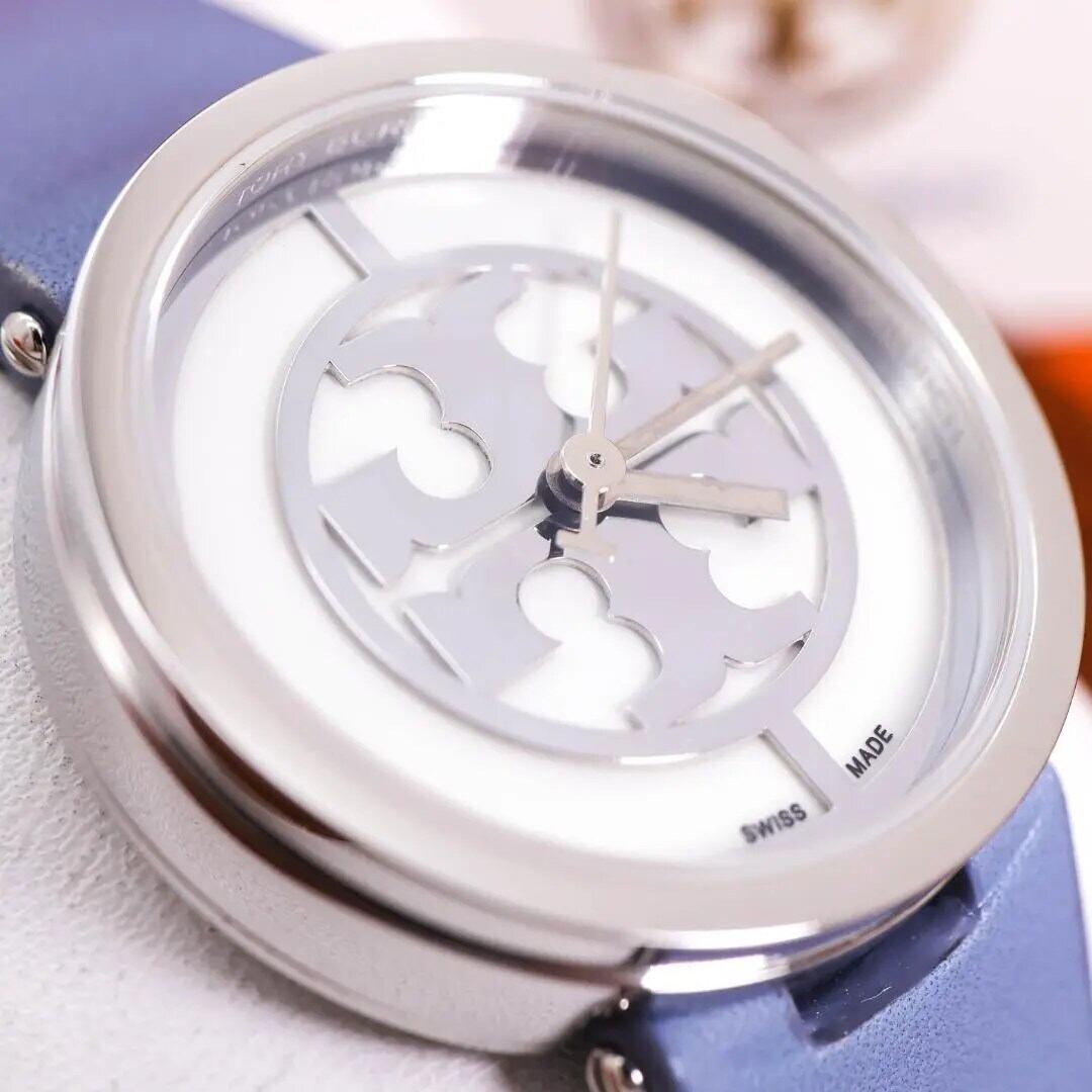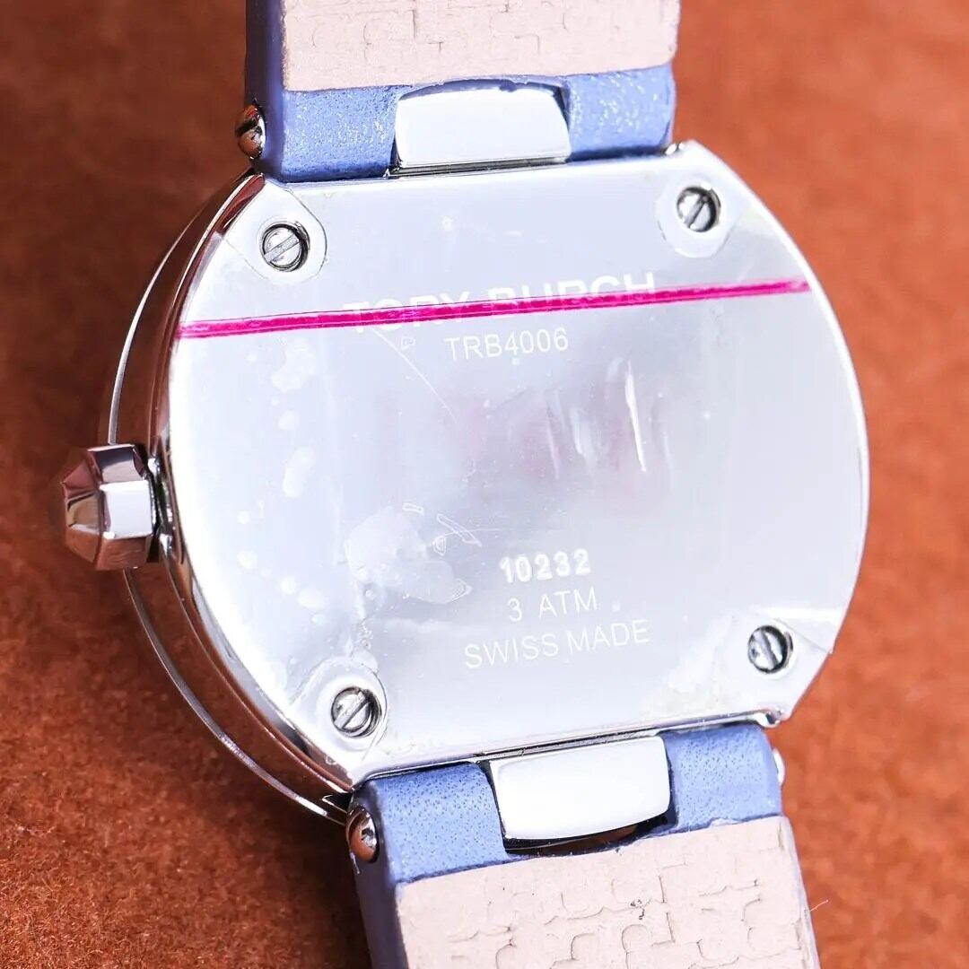 稼働 TORY BURCH 腕時計 ラウンド カーフレザー ロゴ文字盤 1908