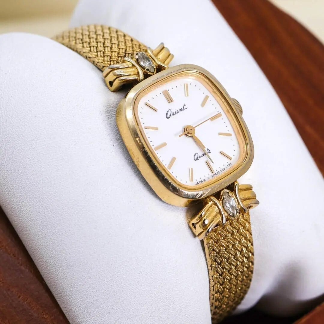 稼働 ORIENT 腕時計 レディース 華奢 ストーン スクエア 2152