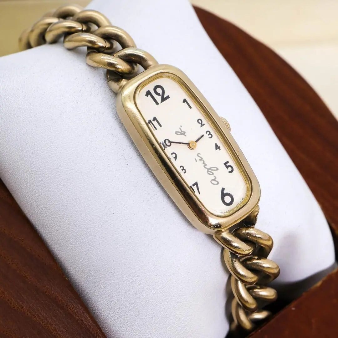 稼働 agnes b. 腕時計 チェーンブレス ロゴ レディース 2418