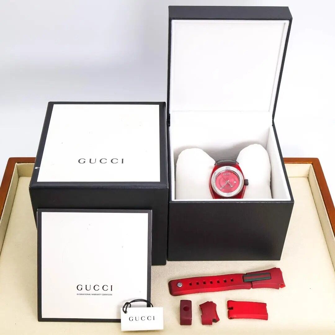 稼働 GUCCI SYNC 腕時計 GGロゴ デイト レッド 新品電池1825