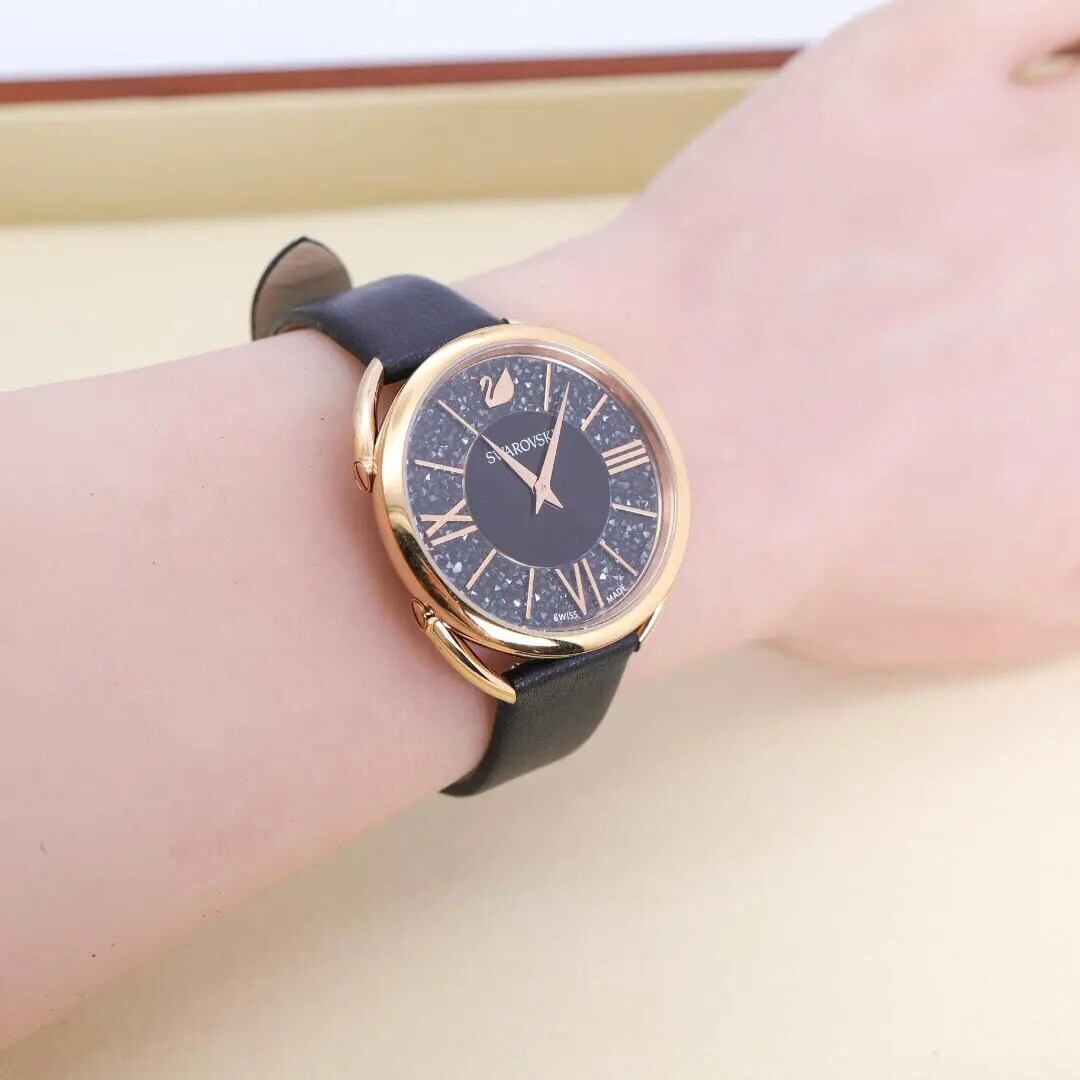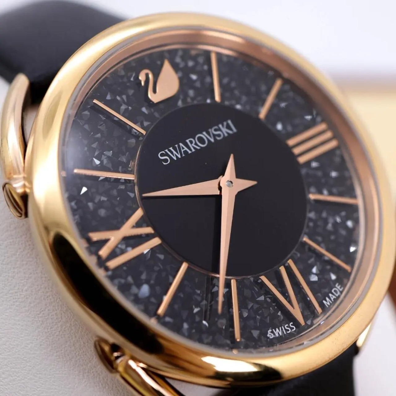 稼働 SWAROWSKI 腕時計 クリスタルライングラム レザー 2575