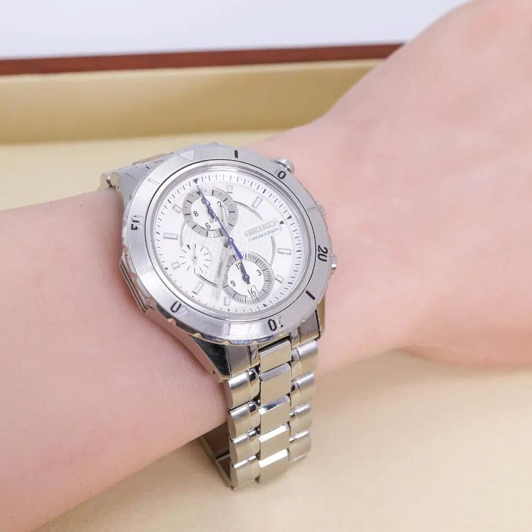 稼働 SEIKO 腕時計 クロノグラフ デイト メンズ 新品電池 2554