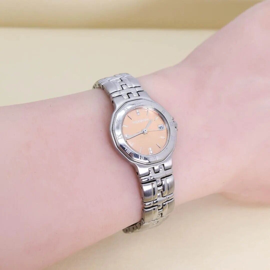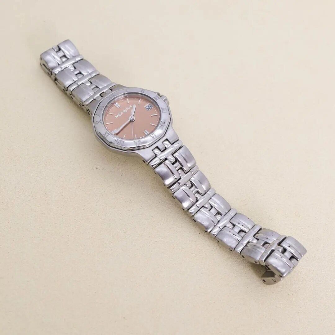 稼働 イヴサンローラン 腕時計 ローマン デイト ピンク レディース 2569