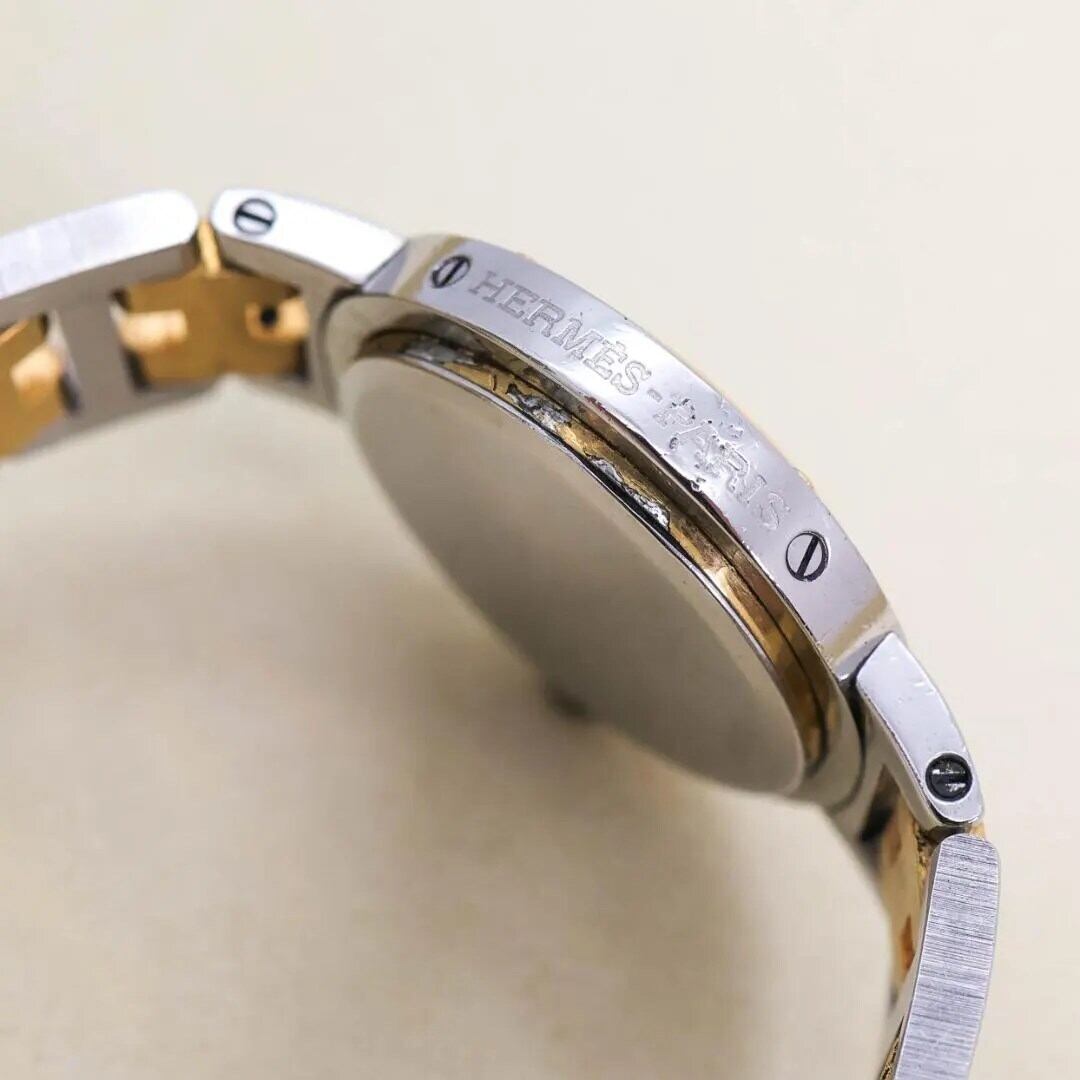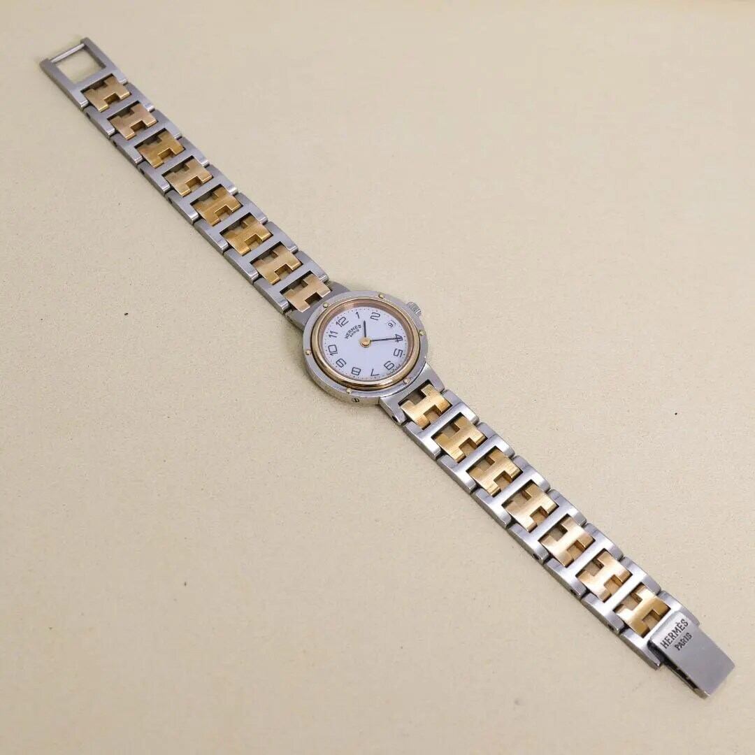 稼働 Hermes クリッパー 腕時計 レディース コンビ 新品電池 2706