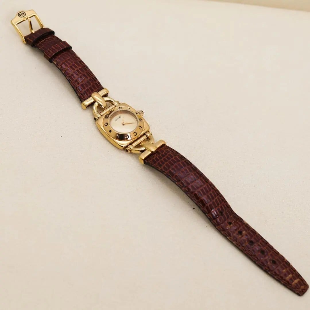 稼働 GUCCI 腕時計 6300L レザー ゴールド レディース 2703