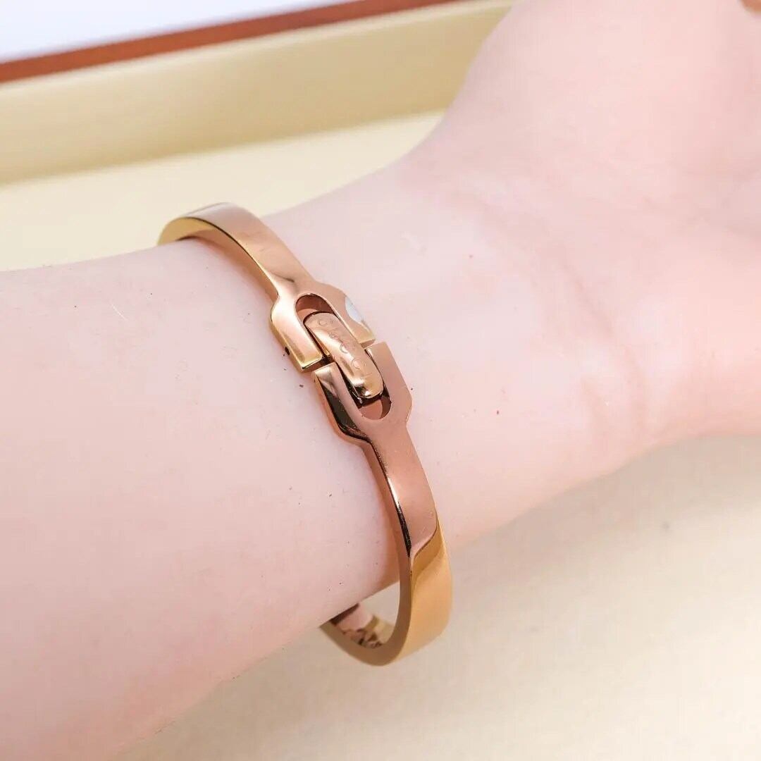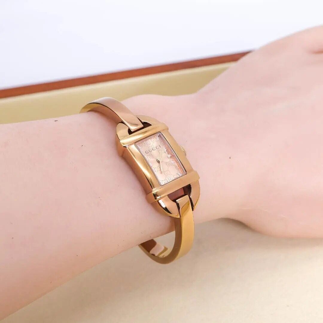 稼働 GUCCI 腕時計 ピンクゴールド GG柄 バングル レディース 2861
