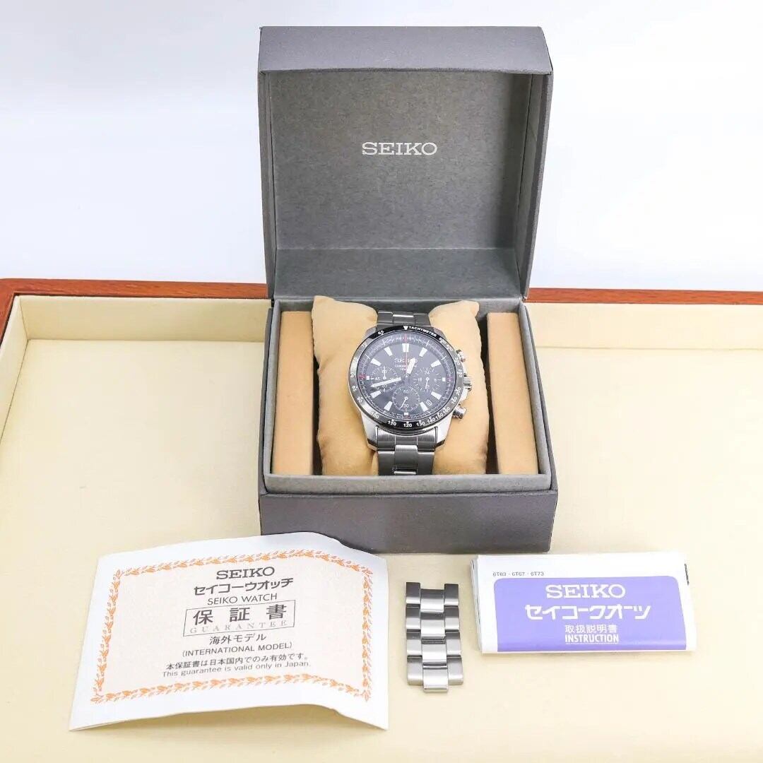 稼働 SEIKO 腕時計 クロノグラフ ブラック デイト メンズ 外箱 2746