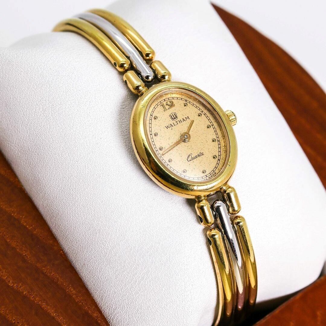 稼働 WALTHAM 腕時計 バングル ゴールド文字盤 オーバル 179