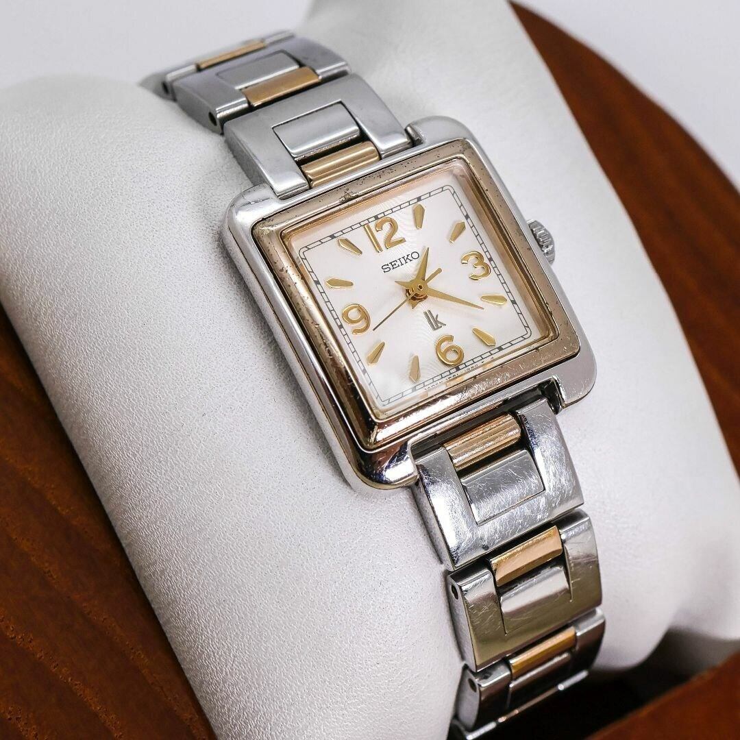 稼働 SEIKO Lukia 腕時計 スクエア バイカラー レディース 341
