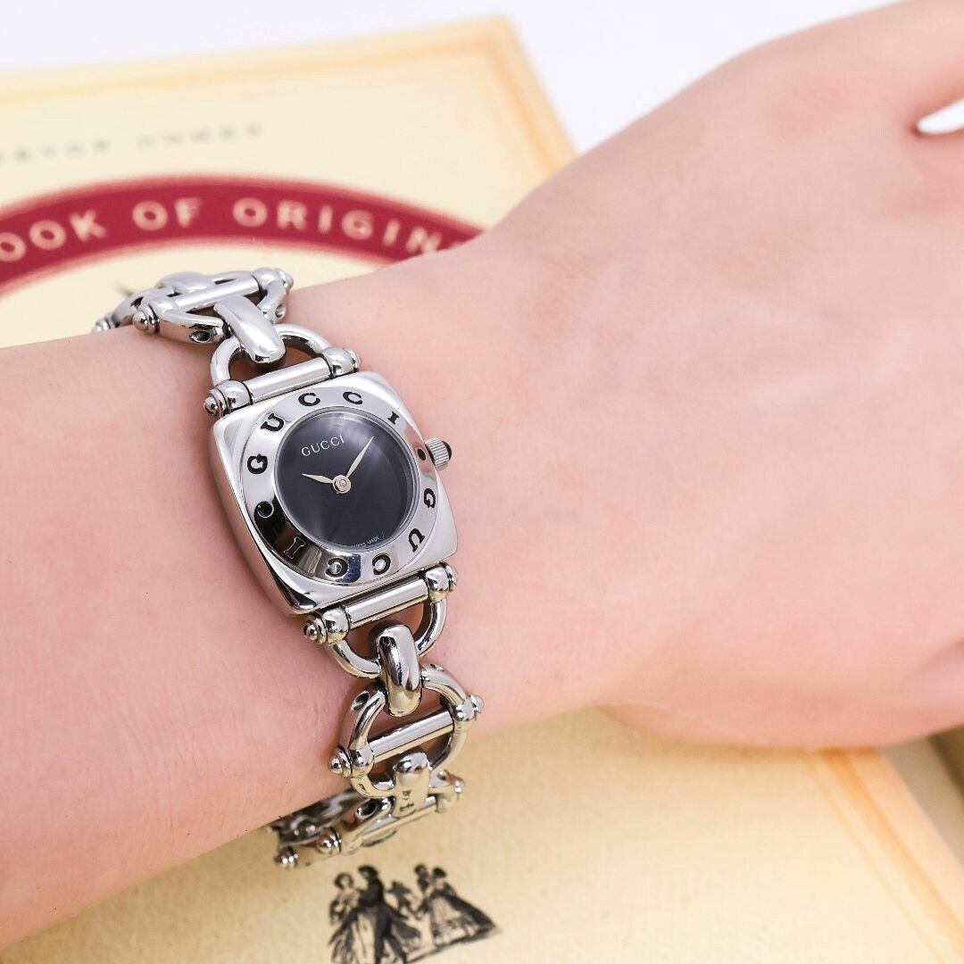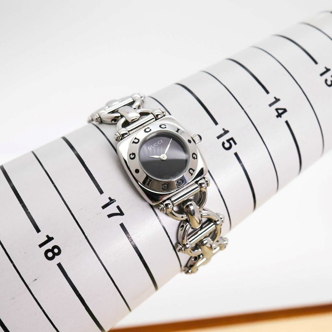 ジャンク品 GUCCI 腕時計 6400L ブレスウォッチ 黒文字盤 ロゴ526