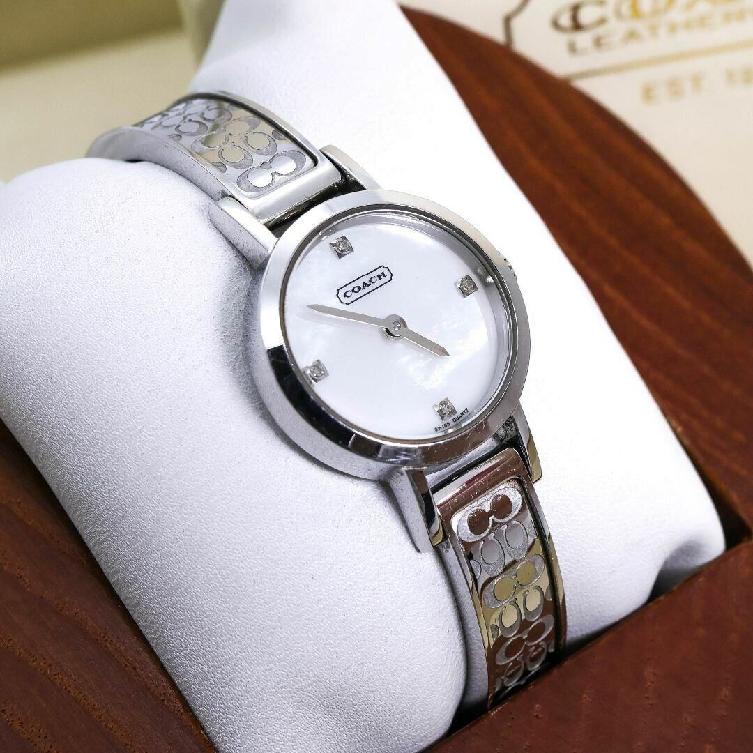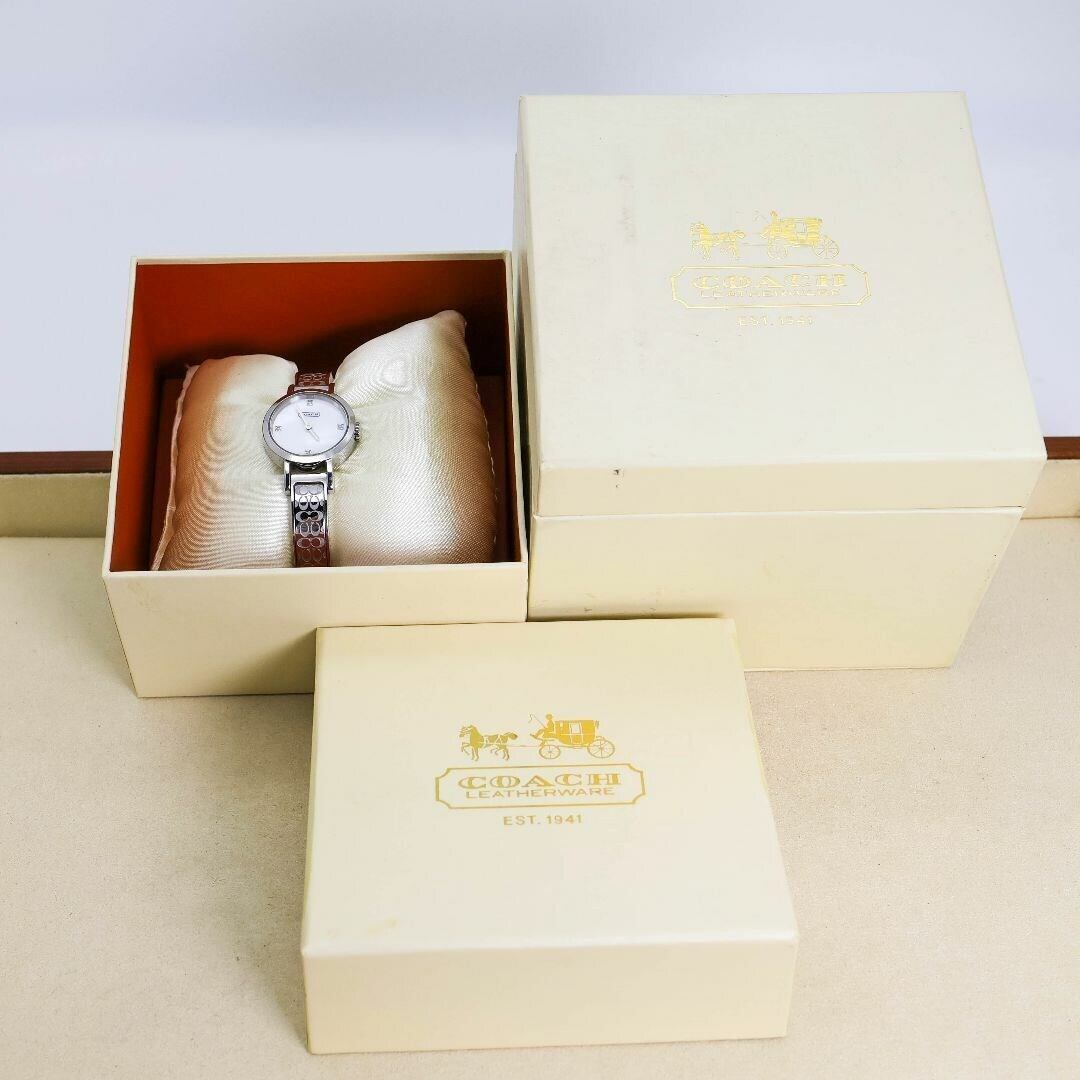 稼働 COACH 腕時計 バングル シェル シグネチャー 4Pダイヤ 141