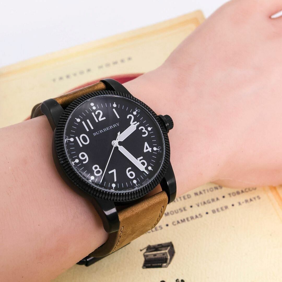 稼働 BURBERRY 腕時計 BU7806 ラウンド ブラック レザー 479