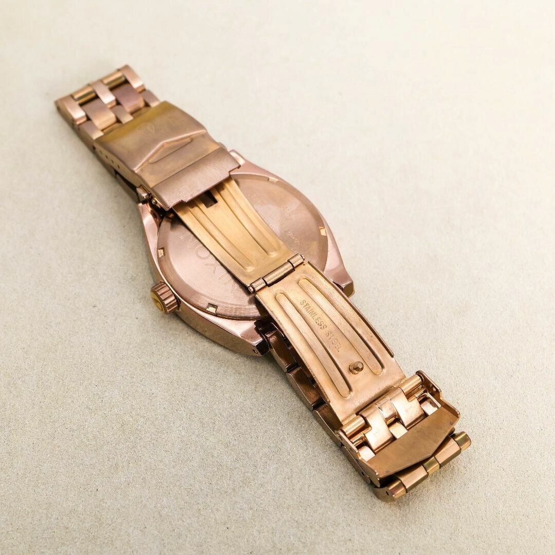 ローズゴールドのカラーがおしゃれでメンズもレディースも着用可能なユニセックスなデザインです。