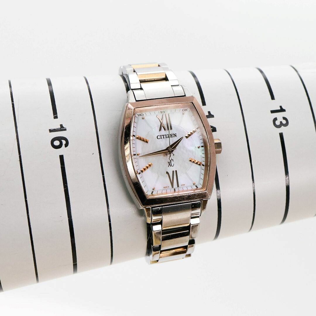 稼働 CITIZEN XC 腕時計 電波ソーラー シェル文字盤 トノー 772