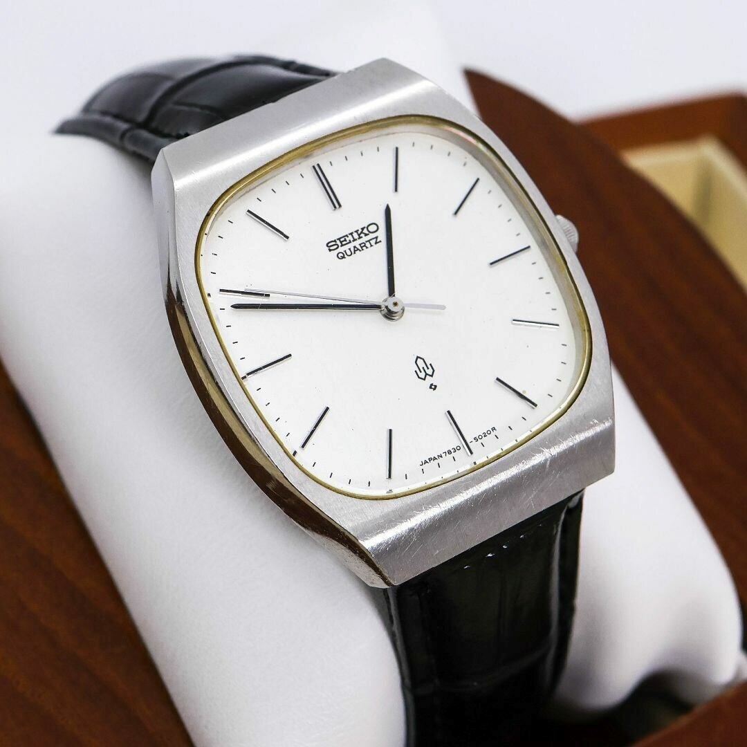 稼働 SEIKO 腕時計 ヴィンテージ 水晶マーク 7830 新品レザーベルト
