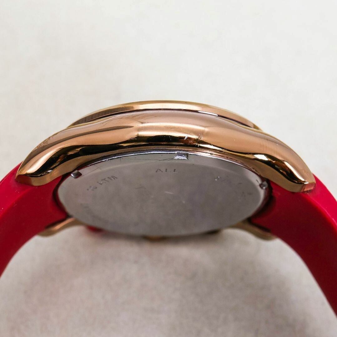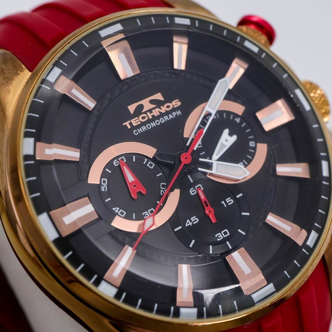 稼働 TECHNOS 腕時計 クロノグラフ レッドラバーベルト 437